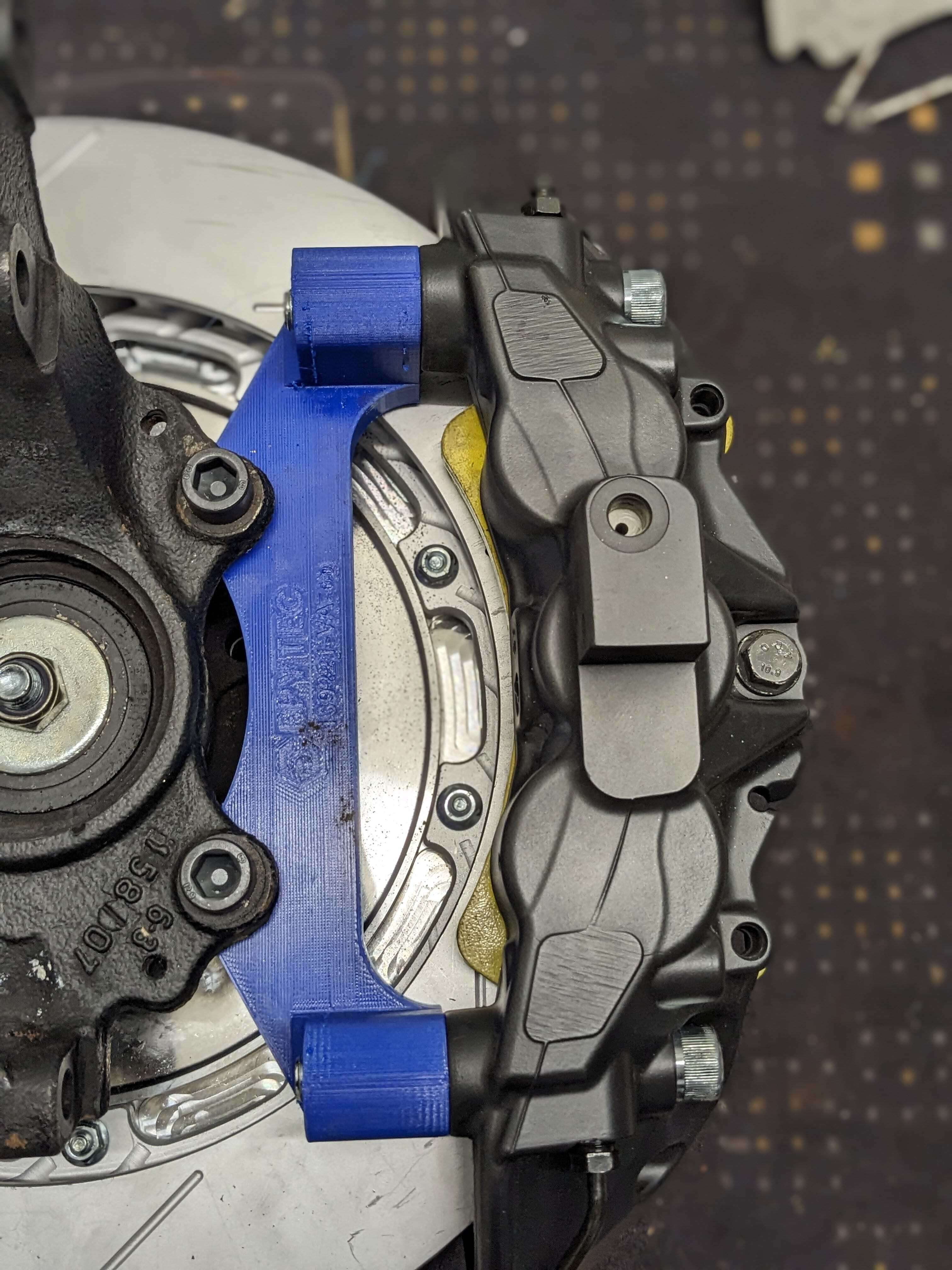 - In order to be able to install the Brembo GT6 4-piston brake calipers and the Audi R8 handbrake caliper (22.8274.03) in combination with the 330x28mm friction ring on the rear axle, we have to manufacture a brake caliper adapter with 4 mounts for the 2 brake calipers.