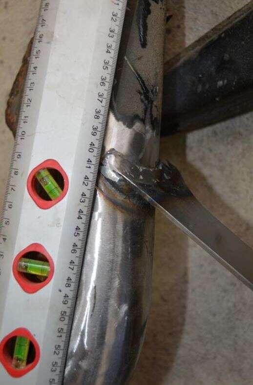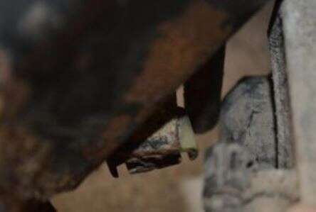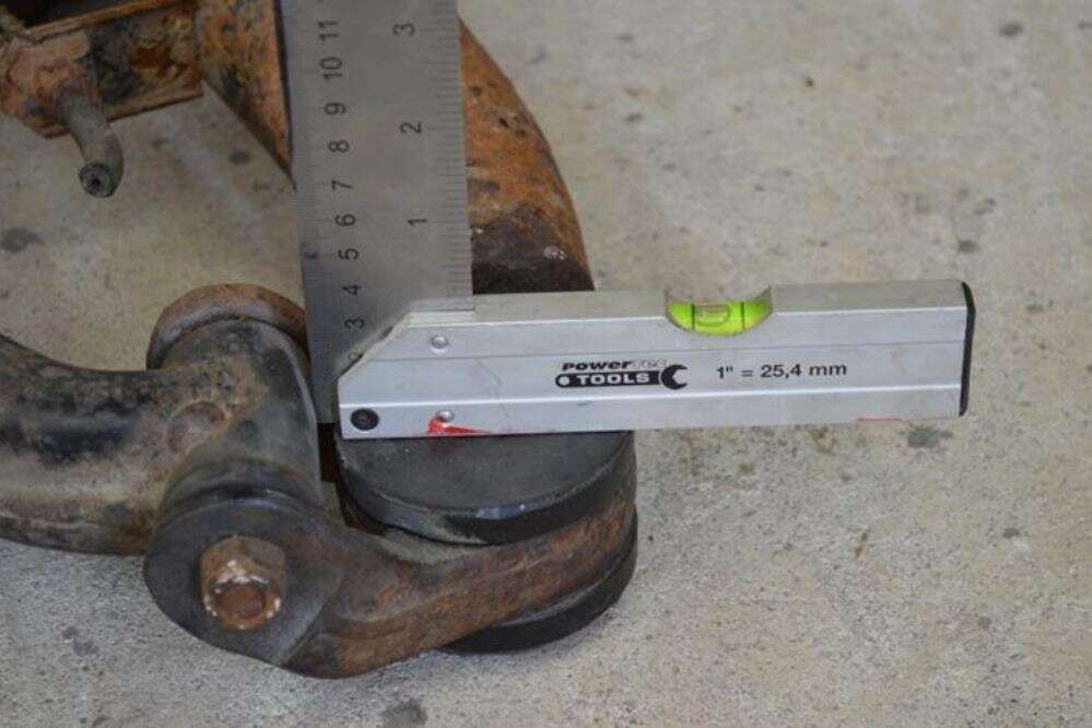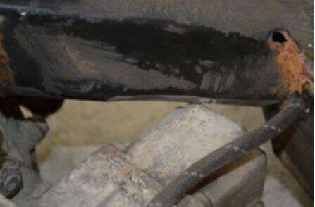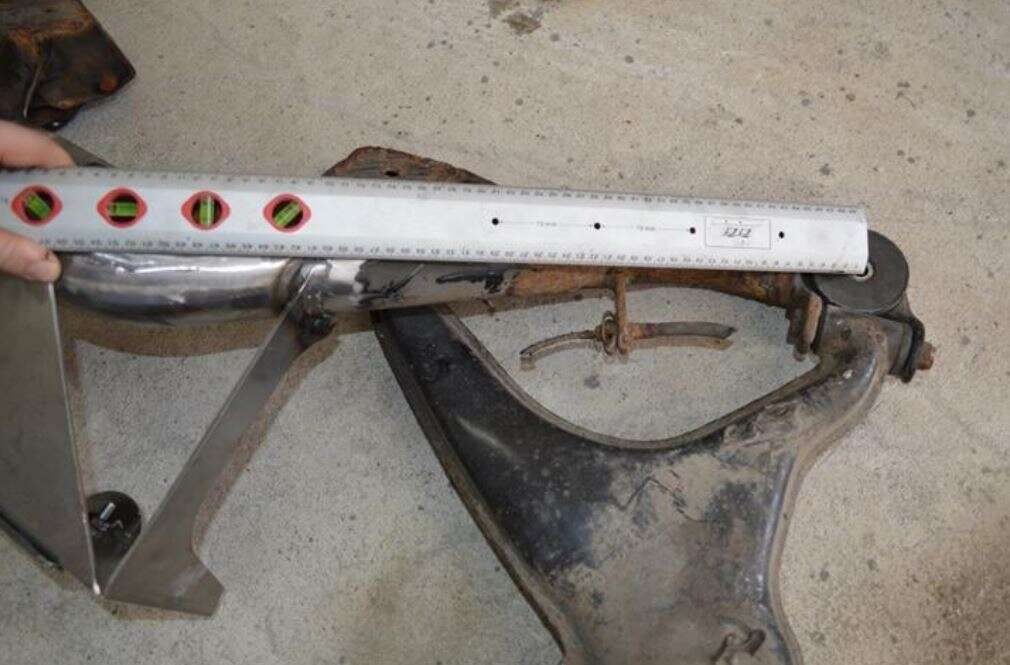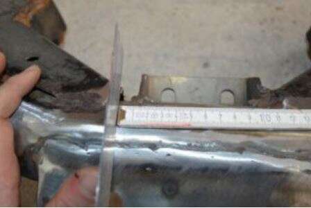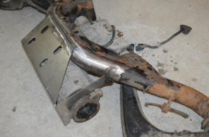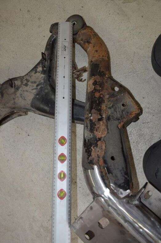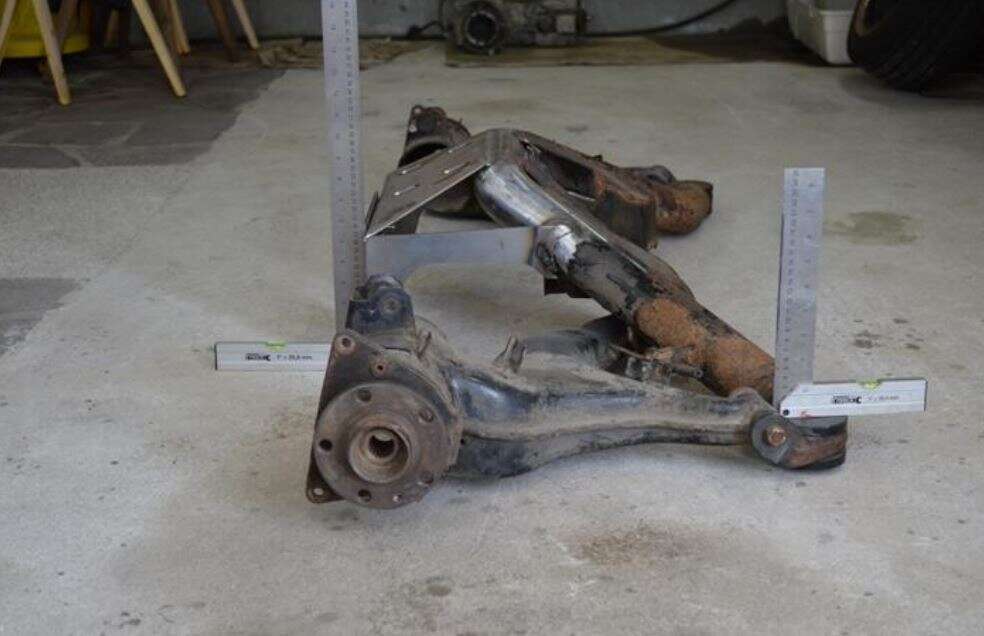 On the underside of the axle (turned) / weld seams, the areas where the axle collided with the gearbox are visible here and have been roughly cut out once. The holder for the brake force regulator has also been removed here.