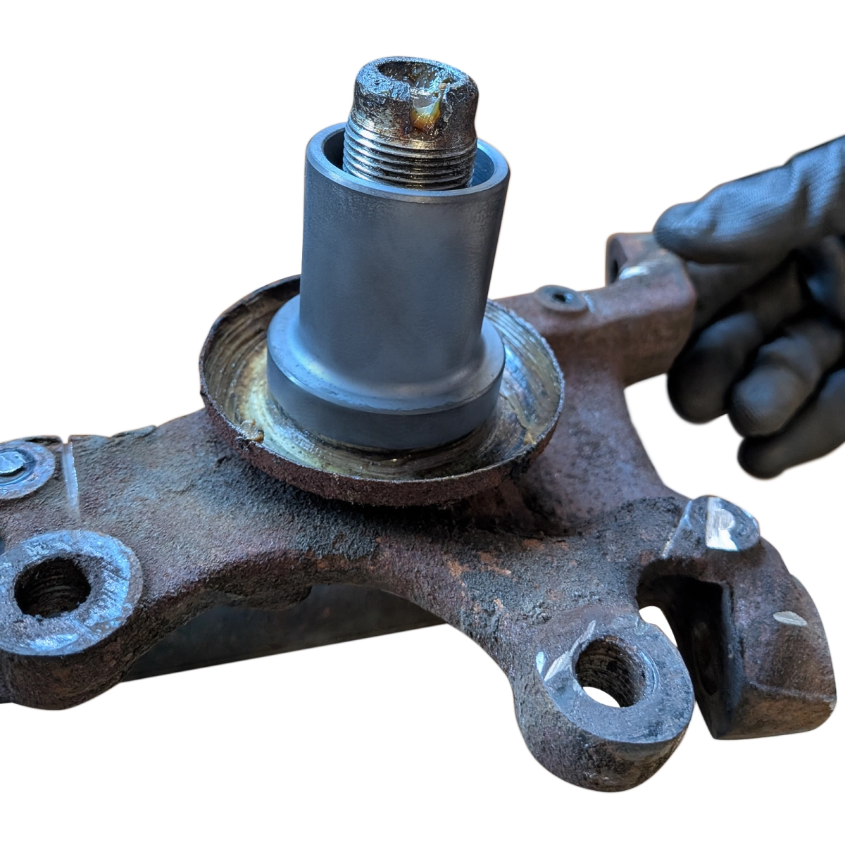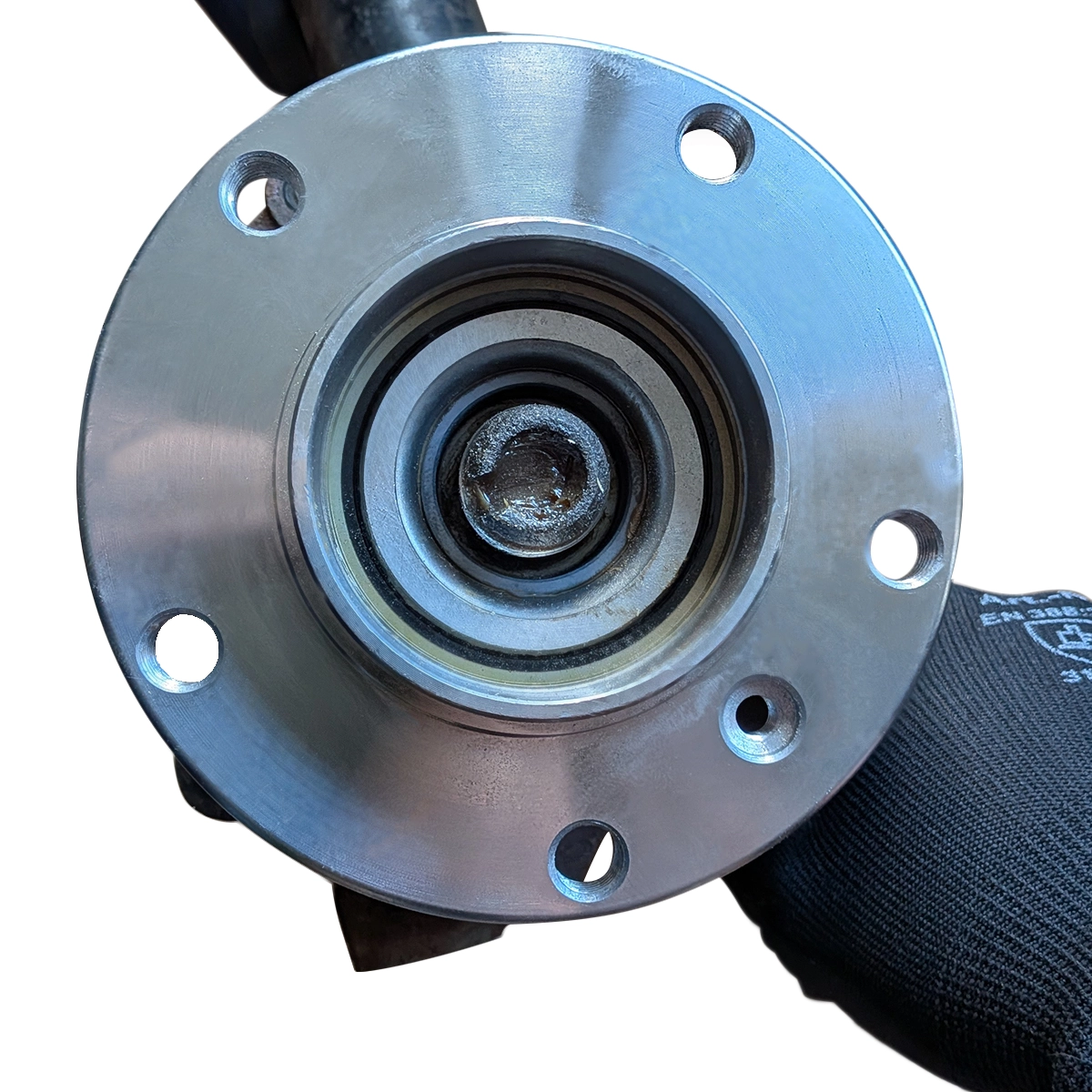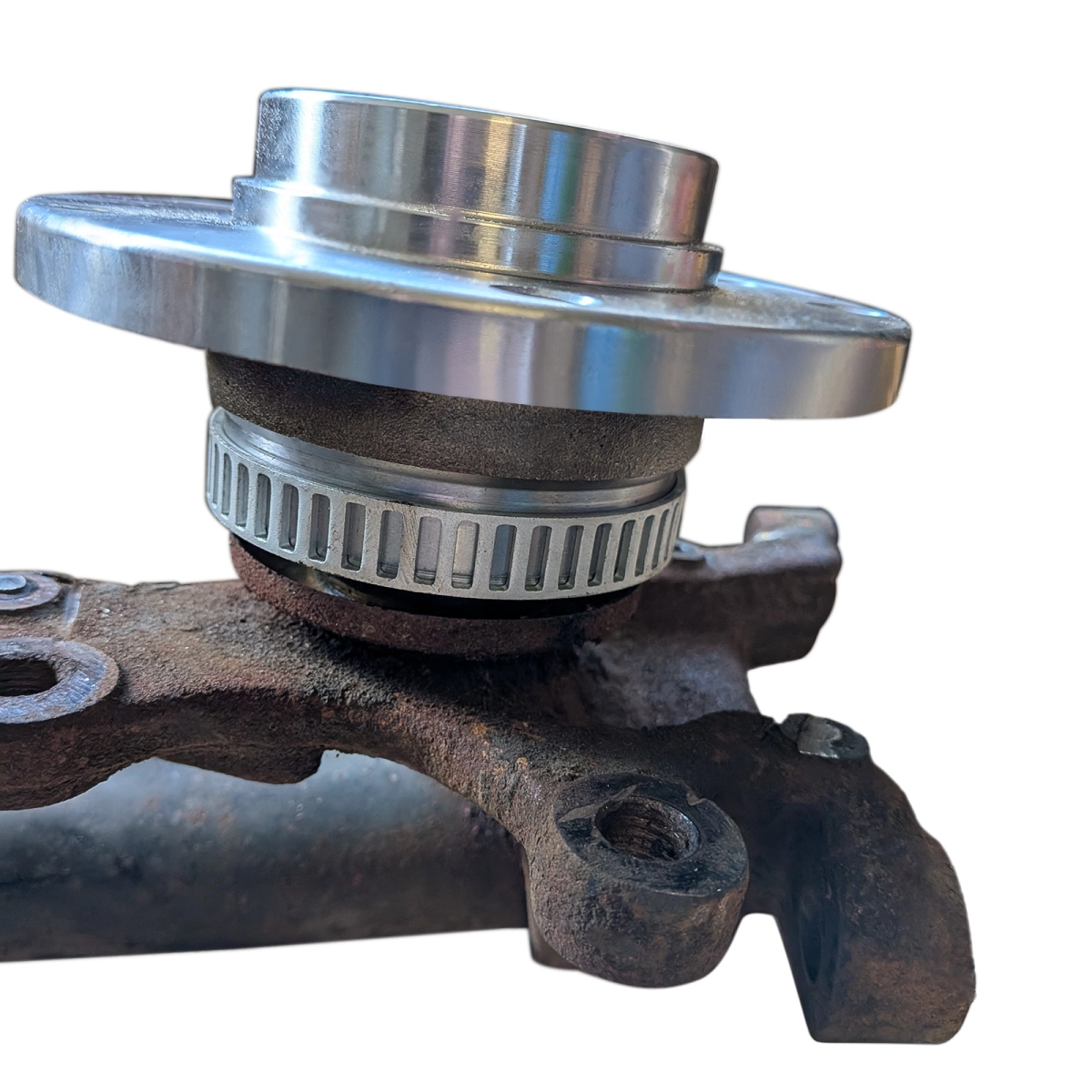 The adapter buchs are simply placed on the original E30 axle stub. Then the E36/E46 hub with the original E36/E46 bearings and the dust cover can then be placed over it and then screwed with the nuts (with lock function).