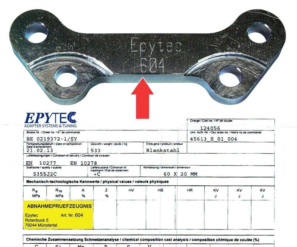 - our EPYTEC brake caliper adapters do not require any sending of your serial parts, no welding, milling or drilling