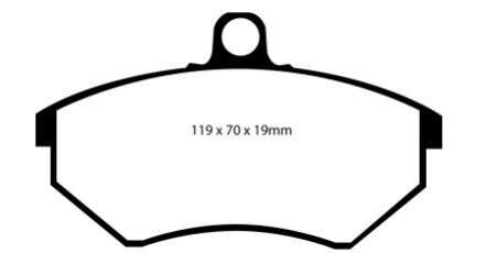Thanks to the EBC Green Stuff sport brake pads, a significant improvement in braking is felt. With a cold friction coefficient of 0.55, the Green Stuff brake pads already guarantee excellent cold deceleration. The effective operating temperature can reach up to 650 ° C. Like all EBC pads for cars, EBC Greenstuff sport pads are with a brake-in coating, beveled corners, heat slots as well as a powder coat.