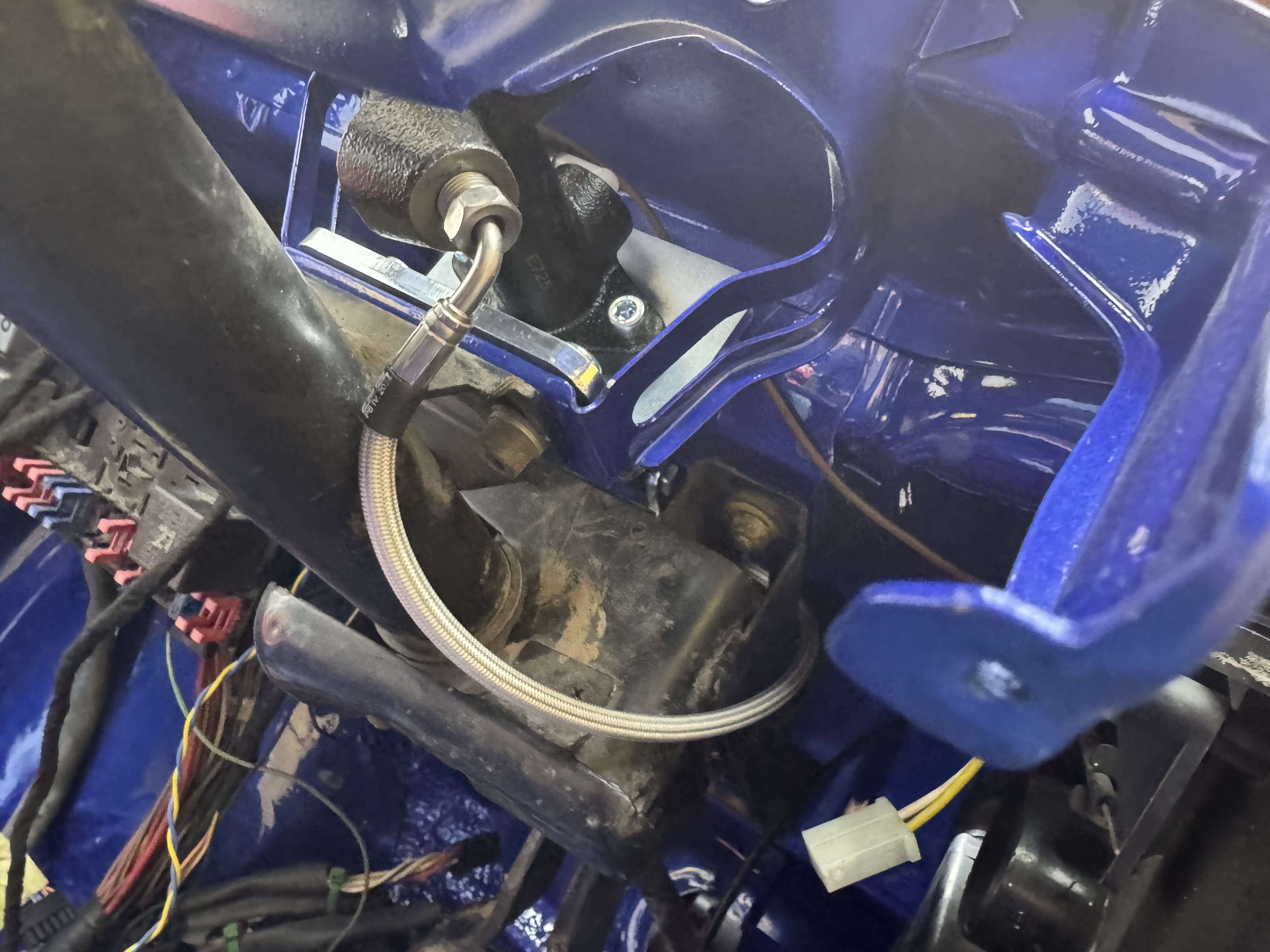 - It can happen that the gearshift tower (no. 3 image) is next to the transmission mount. In this case, you will not get the clutch cable holder (no. 1 image) mounted correctly and the clutch cable (no. 2 image) will not be mounted either. - In this case, we can offer you the following solution. - With our counterholder for the clutch cable, you can avoid exactly this problem. In this case, you do not need to fit the small bracket for the clutch cable above (no. 1 image), but can simply use our counter bracket (click here). This is installed as shown in the picture: - As soon as the counterholder (click here) is fitted, you have created the necessary space to be able to fit the clutch cable correctly.