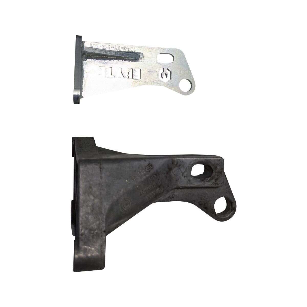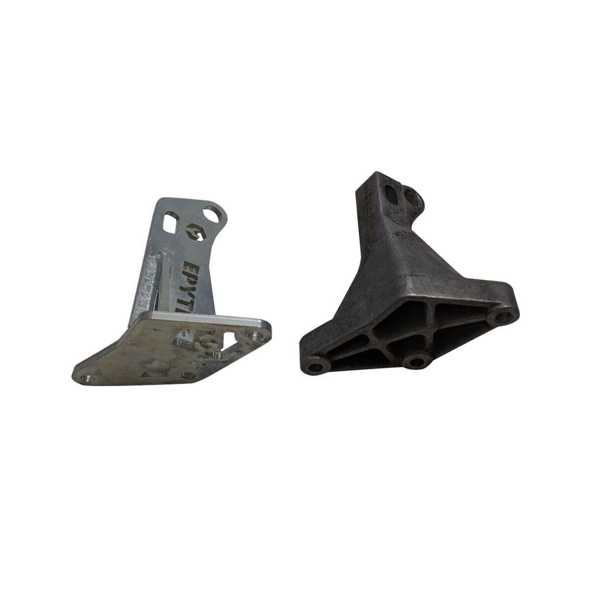 Our gearbox mounting bracket is made of high-strength steel and is reinforced compared to the original aluminum engine bracket.