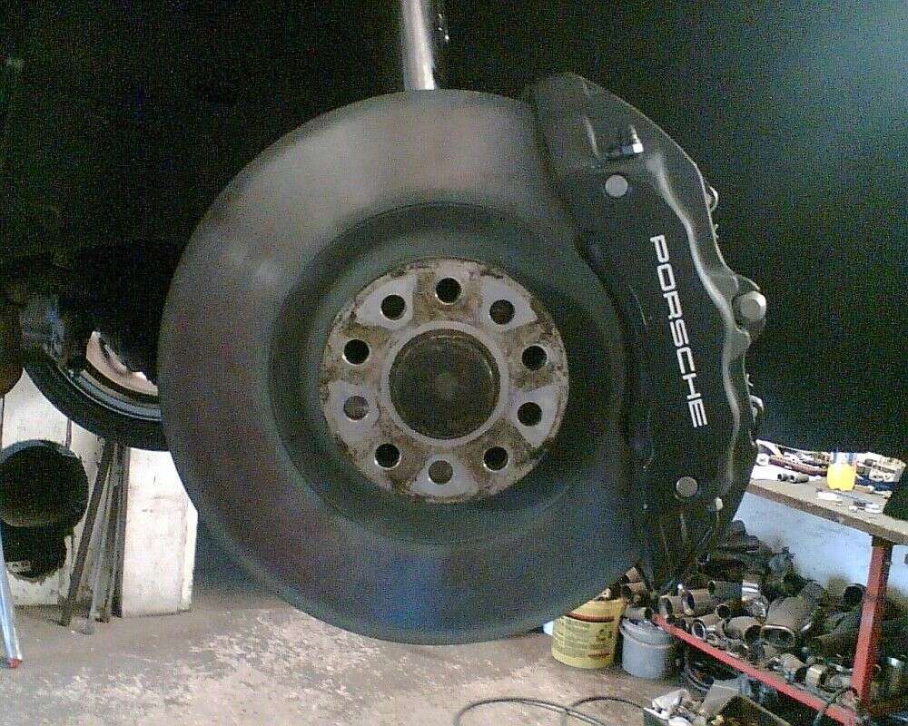 Brake caliper adapter to use Porsche 6-piston calipers from the Porsche Cayenne (18 inch) part number 955.351.421 / 955.351.422, in conjunction with the brake discs from the A8 A6 S8 with the dimensions 347x30 part no. 4F2 4F5 PR 1ZL these only have to be attached to the centering can be adjusted.