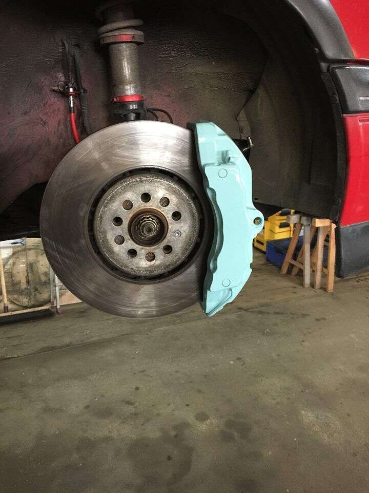 - Brake calipers from the Porsche Cayenne or VW Tuareg (17 inch variant) part number: 7L6 615 123 T and 7L6 615 124 T