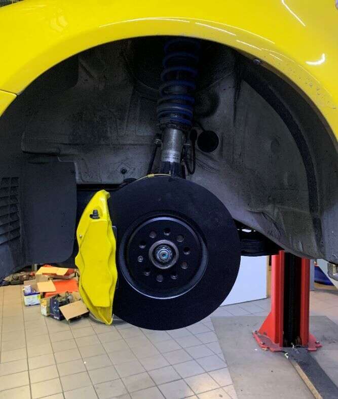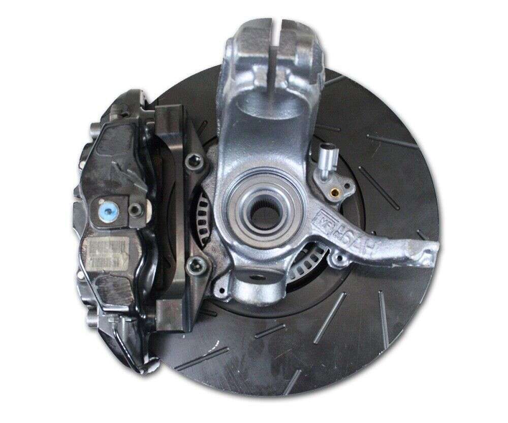 Brake caliper adapter for Golf 4 series to install TTRS brake calipers, combined with the original R32 brake dics from Golf 4 R32 ( 334x32 , PCD 5x100).