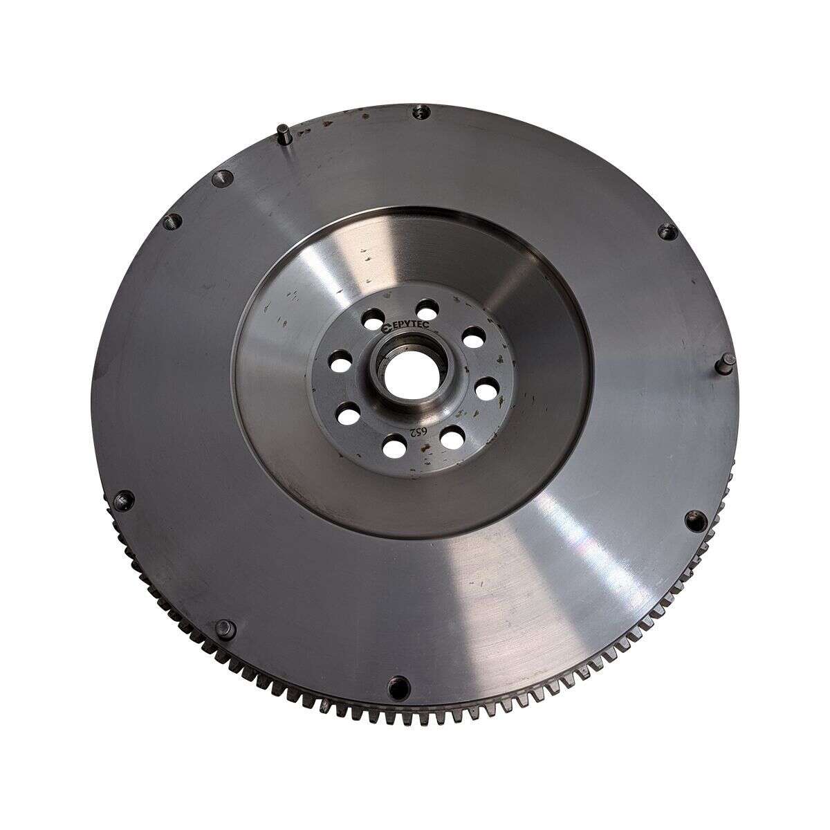Unsere Schwungscheibe ist aus einem Stück Chrom Moly Stahl gefertigt. Sie ersetzt die original Guss 2 Massenschwungscheibe.