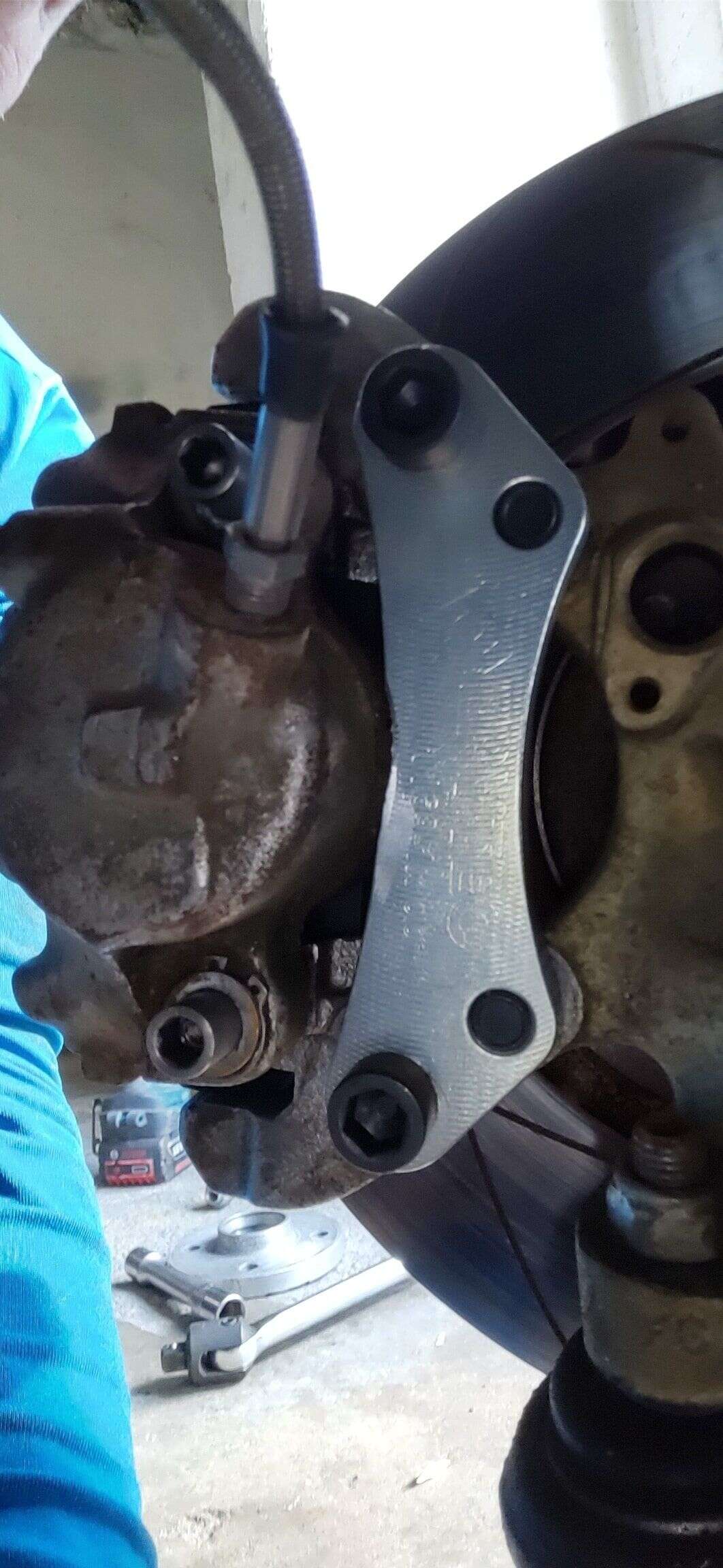 - Les disques de frein doivent être percés au cercle de trous BMW 4x100 et le diamètre du moyeu doit être augmenté à 66mm (également réalisable chez et dans la maison, clique ici).