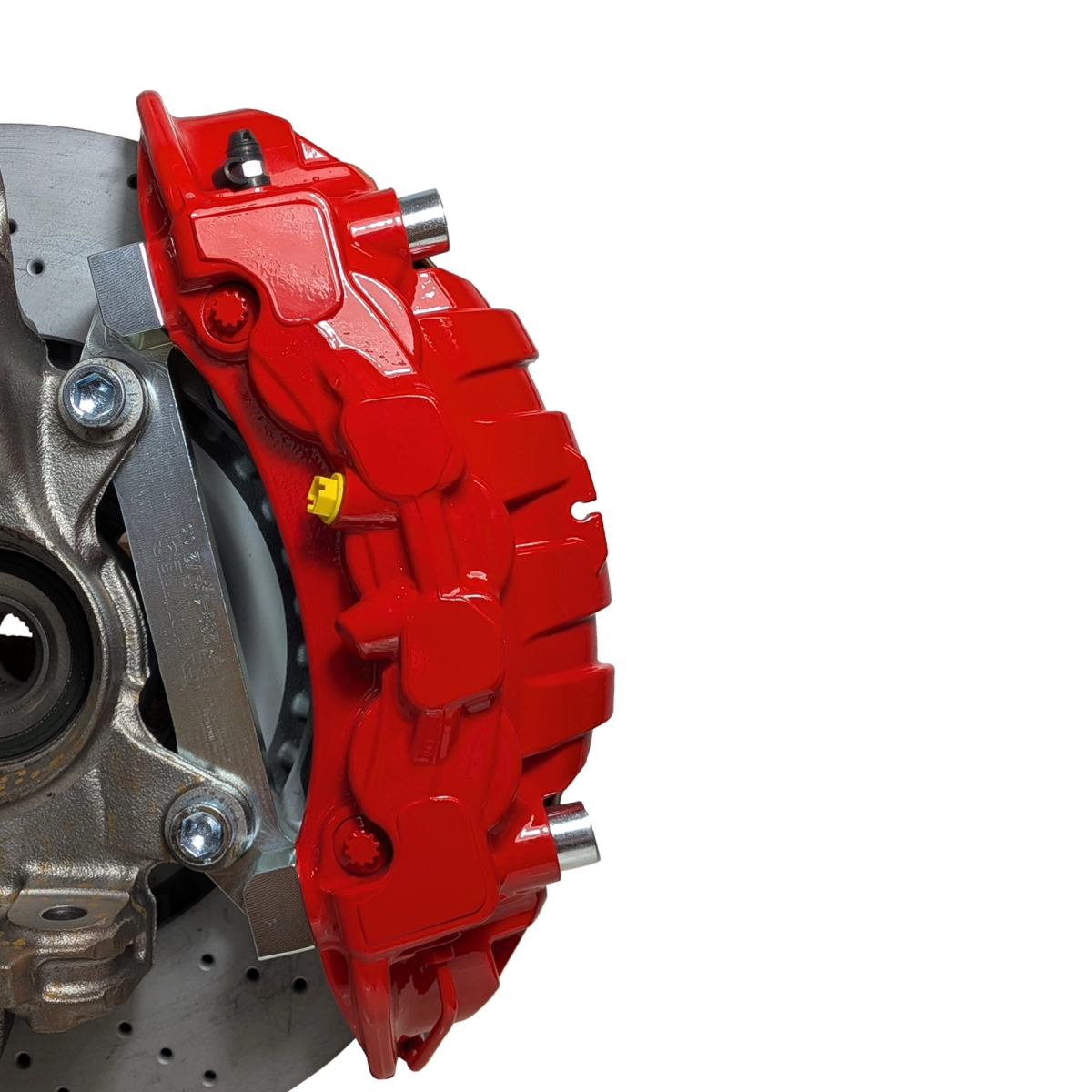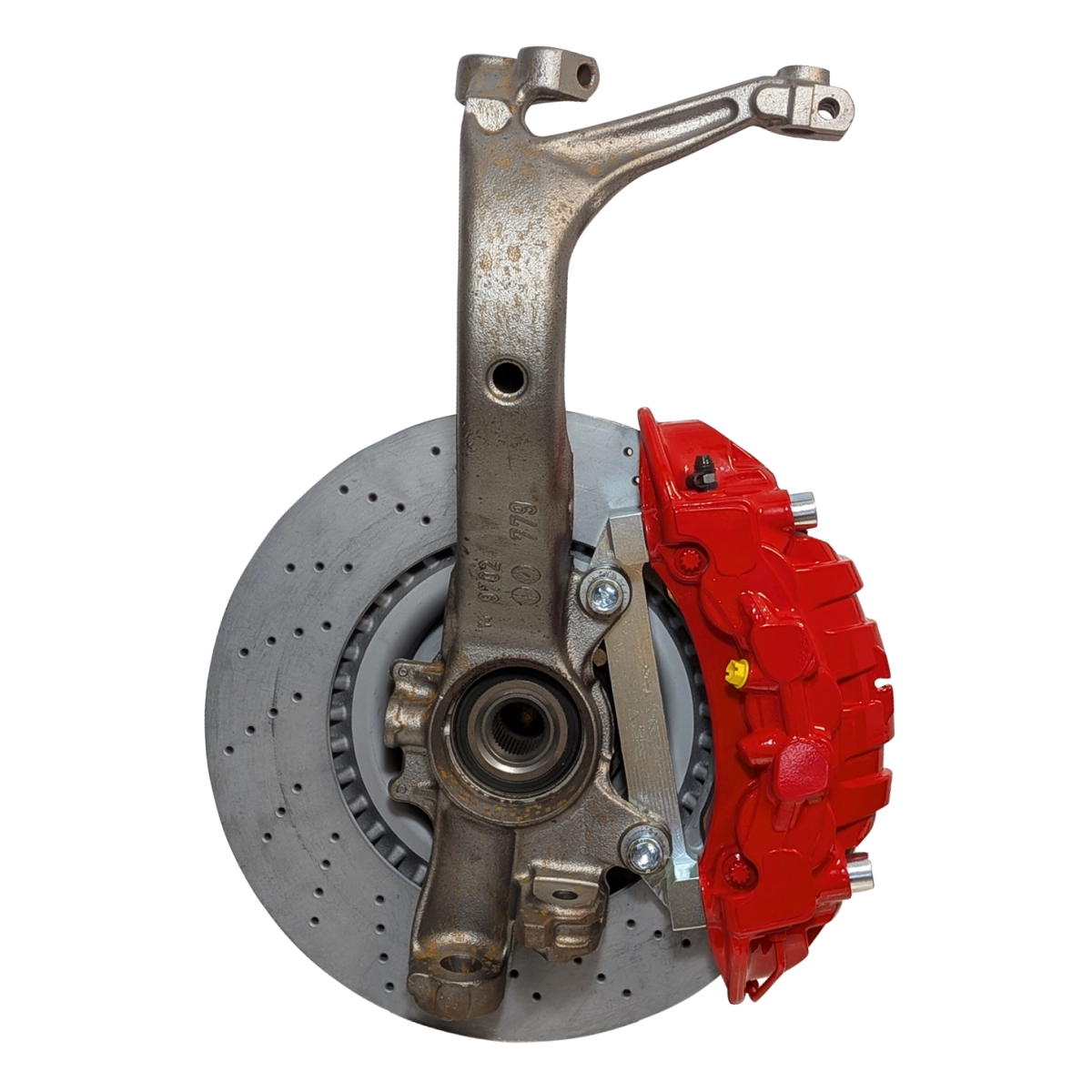Adaptateur d'étrier de frein pour l'essieu avant de l'Audi S4 B5, Audi A6, VW Passat, etc. sur les étriers de frein Brembo à 6 pistons de la Porsche Panamera en combinaison avec les disques de frein 375x36mm de la Mercedes GL.