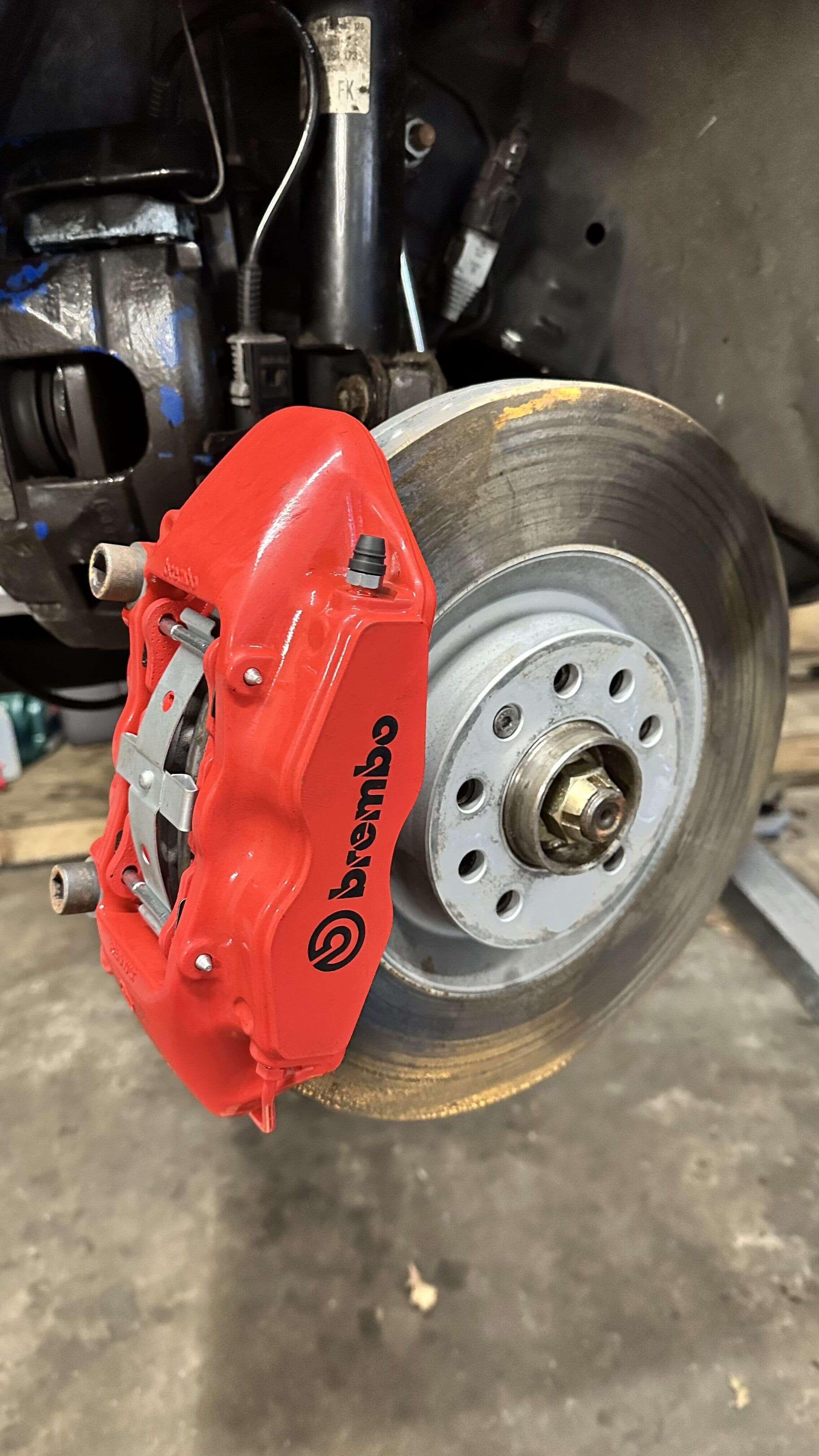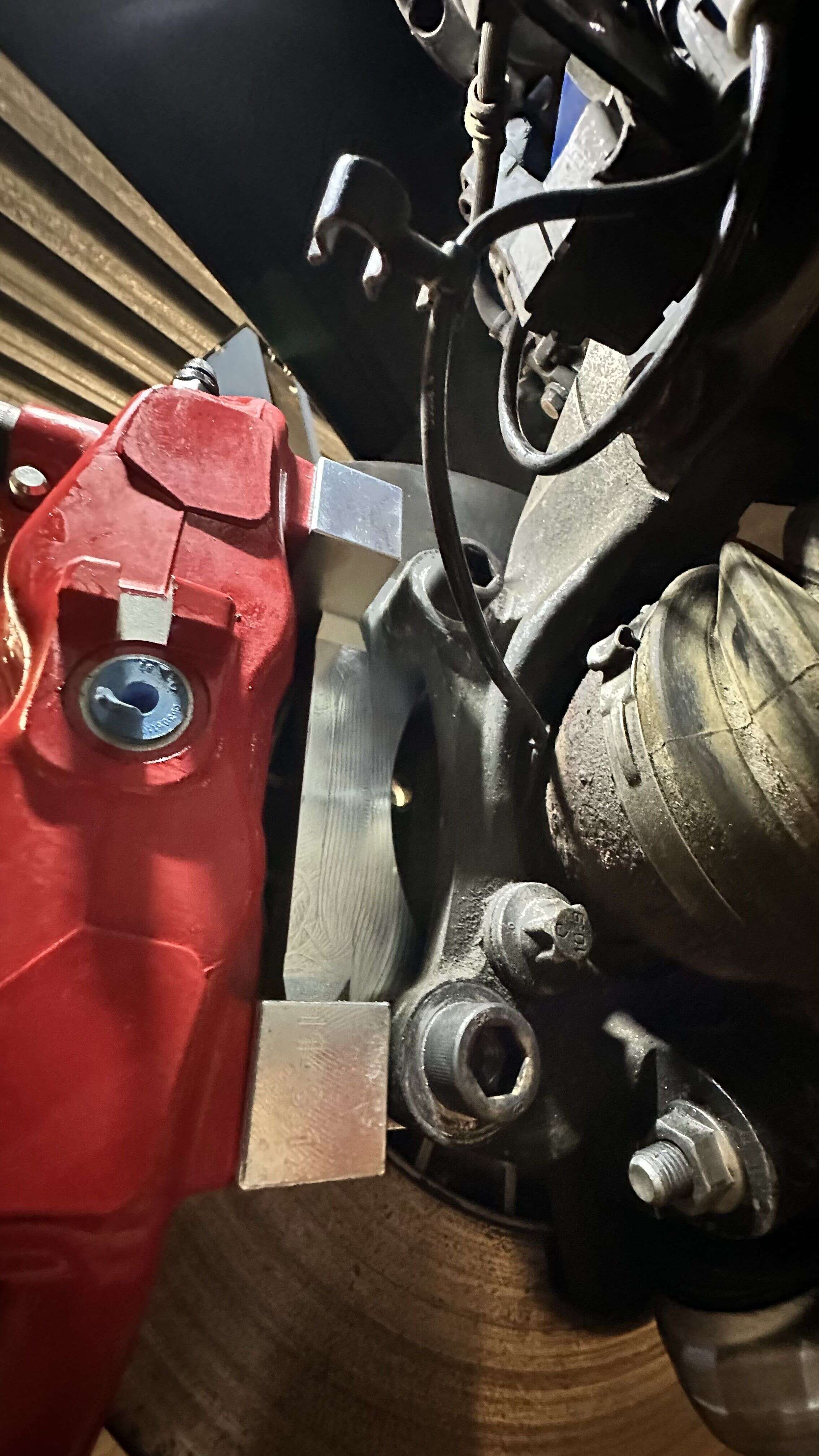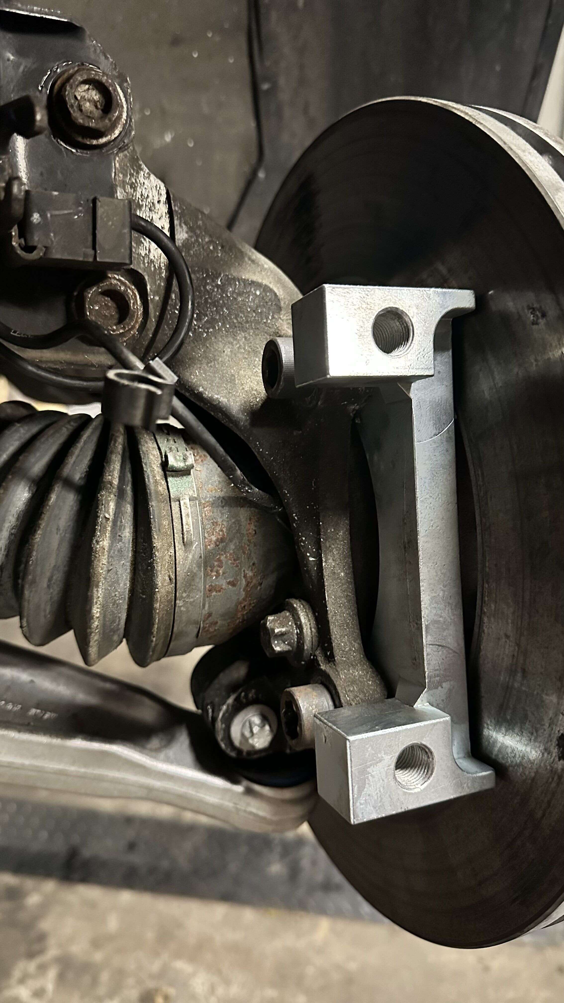 - Monter l'adaptateur avec les composants nécessaires et vérifier ensuite si de nouvelles conduites de frein sont éventuellement nécessaires, car il se peut, selon le modèle, que les anciennes ne soient pas assez longues ou que leur raccord ne soit pas adapté. Nous recommandons de passer à des conduites flexibles en acier en raison de leur efficacité nettement supérieure. Nous avons développé un configurateur de conduites flexibles en acier spécialement pour ce mode de fonctionnement, dans lequel tu peux les assembler selon tes souhaits et les poser ensuite. Cliquez ici pour accéder au configurateur de flexibles en acier >> Configurer une conduite de frein en acier flexible <<.