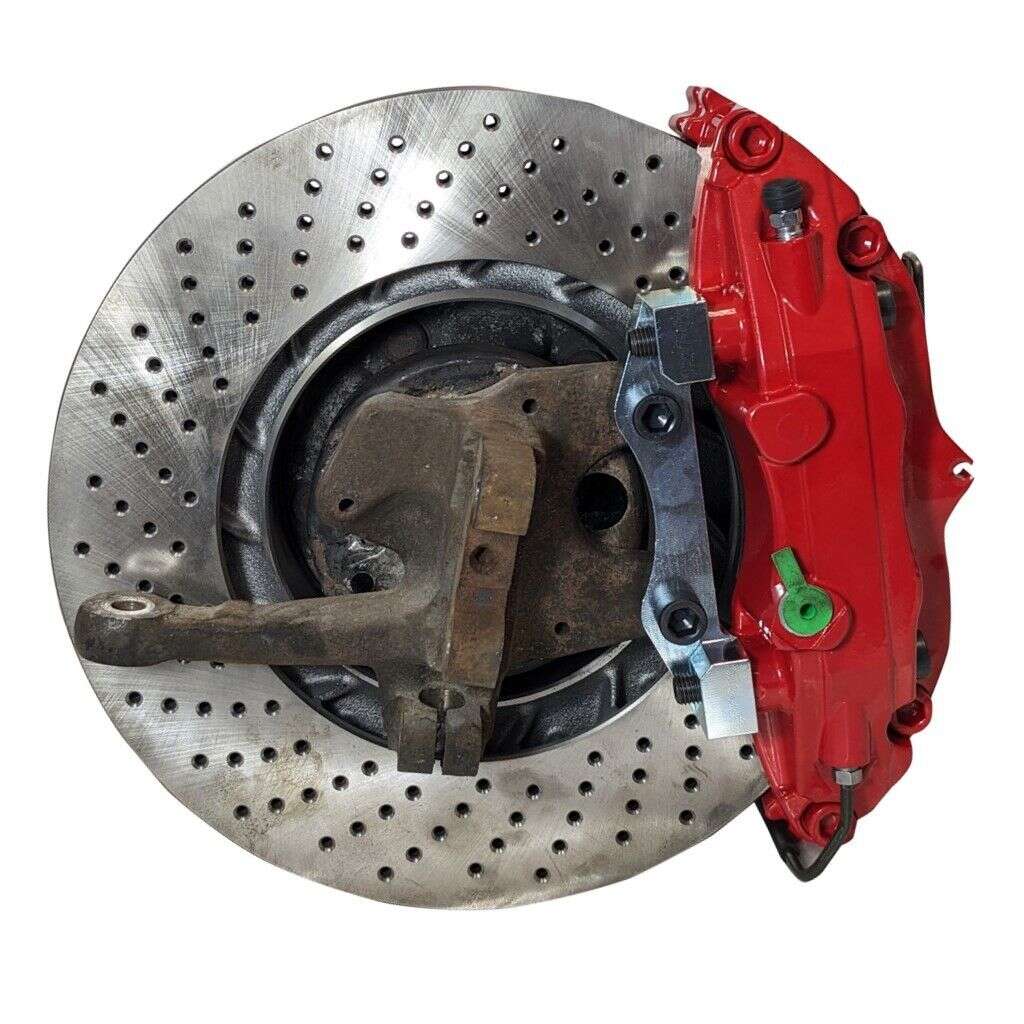 Adaptateur d'étrier de frein pour la série Porsche 944 964 pour monter les étriers de frein Porsche 933 à 4 pistons Brembo BIG RED en combinaison avec les disques de frein 322x32 mm de la Porsche 964 3.6 Turbo.