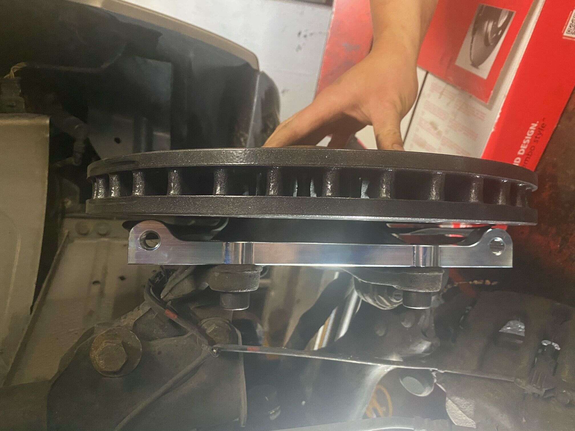 Adaptateur d'étrier de frein, essieu avant, sur modèles Mercedes W639 Viano, pour conversion vers les étriers de frein Mercedes W219 CLS 55 AMG 8-piston Brembo, combiné avec les disques de frein 375x36 de Mercedes ML / GL 350.