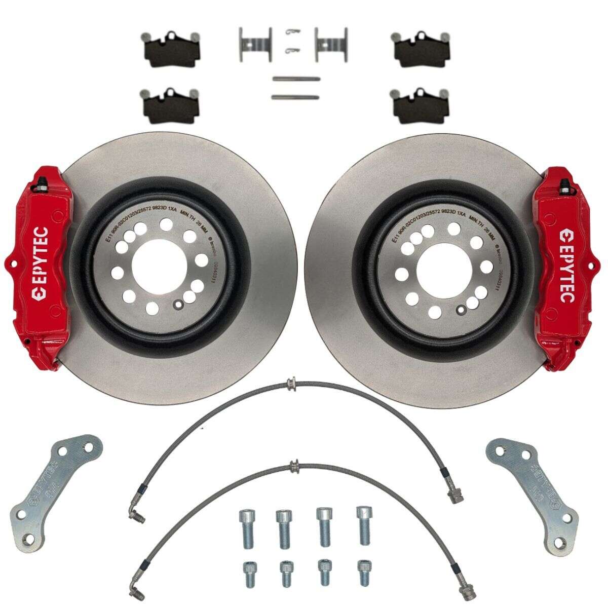 Mit unserem Hochleistungs-Bremsanlagen-Kit für den Audi VW TT A3 S3 VW Golf 4 Polo VW Polo 6r WRC Bora kannst du deine Vorderachse auf 4-Kolben Porsche Brembo Sättel umrüsten und eine ideale Performance erzielen.