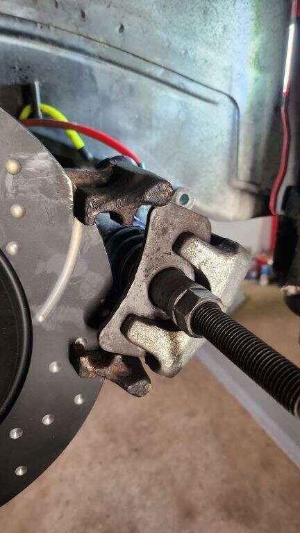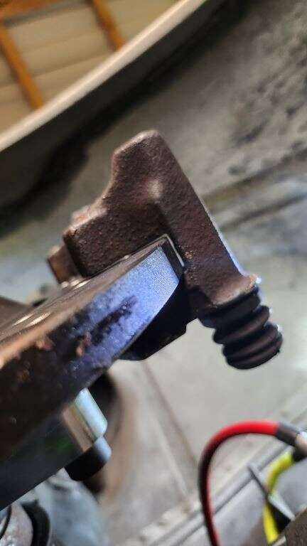 Cela permet de s'assurer que l'étrier de frein est correctement aligné avec le disque de frein et que tout repose bien à plat. S'il n'est pas à plat, retirer à nouveau l'adaptateur et nettoyer à nouveau la surface d'appui ou placer l'adaptateur sous.