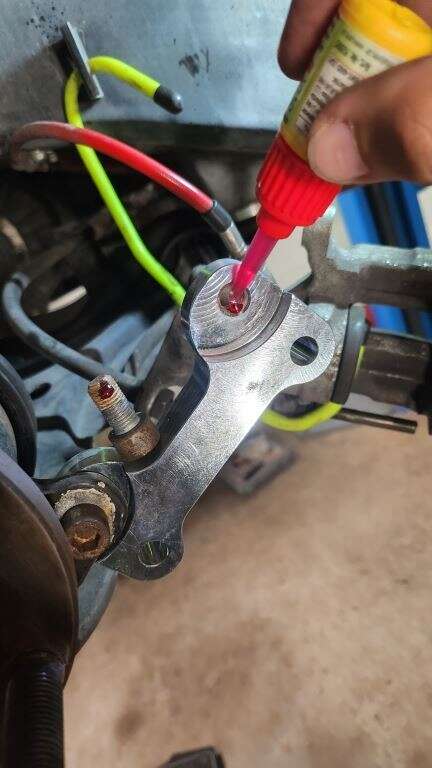 L'étrier de frein d'origine de l'Audi Quattro type 85/Audi S2 Coupe peut maintenant être monté sur l'adaptateur à l'aide des vis fournies.