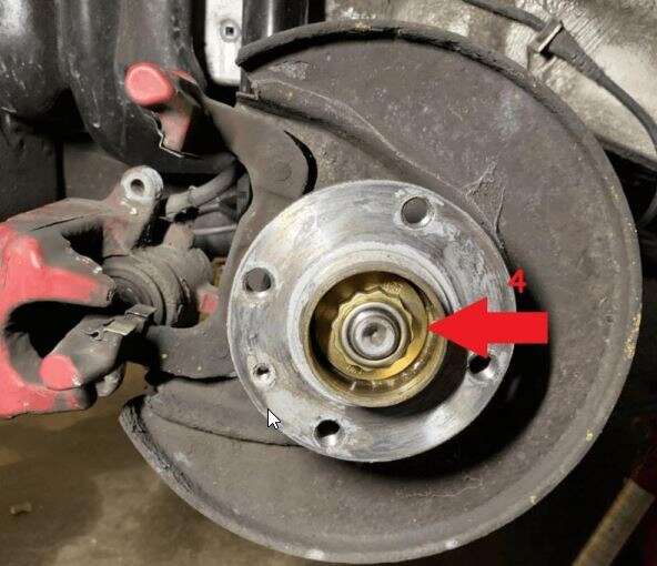 - Desserrer l'écrou central (4) et retirer le palier de roue.