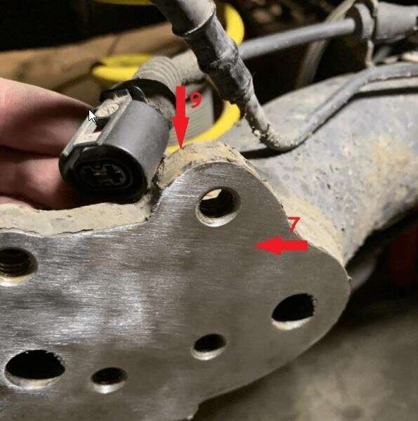 - (9) ici, il faut enlever un peu de matière de l'axe, sinon le connecteur ABS ne s'adapte plus au capteur