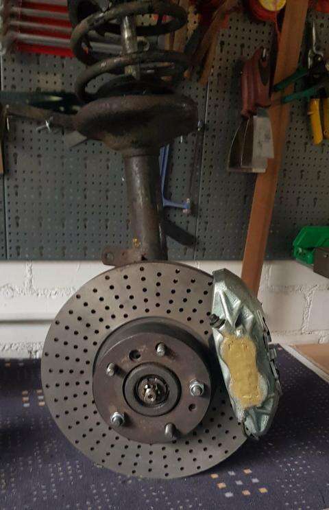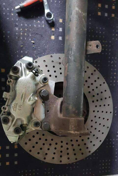 Notre client Richard souhaite monter sur sa BMW 3.0 CSI le système de freinage suivant avec ces composants sur son essieu avant :