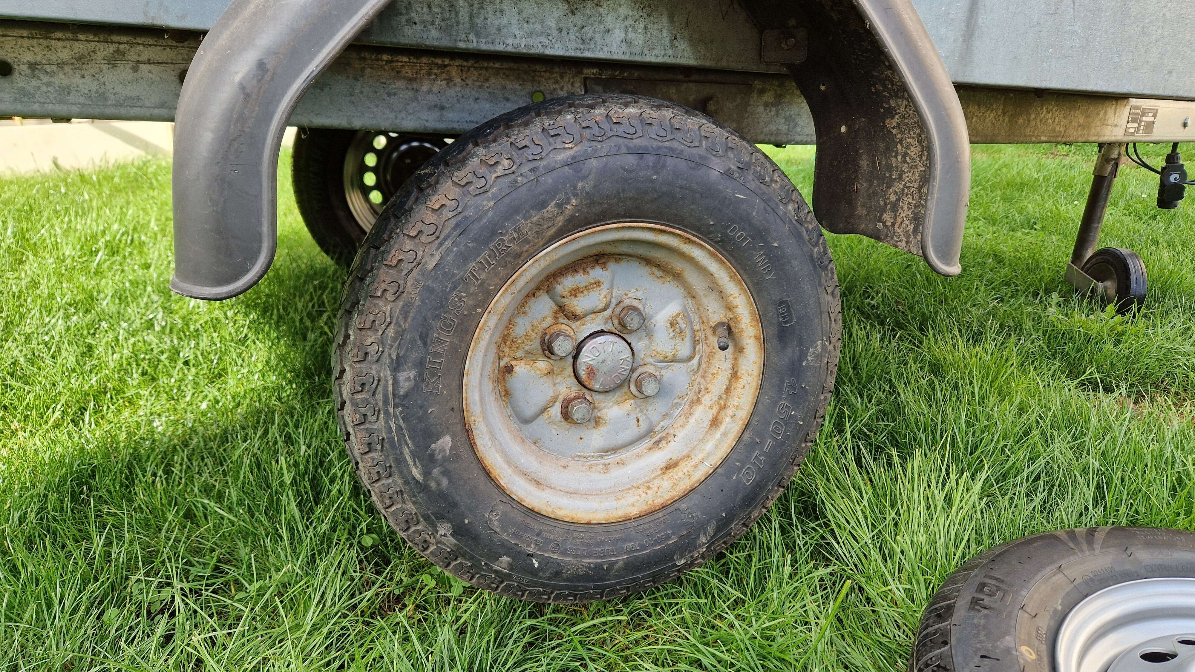 La remorque disposait à l'origine d'un essieu KNOTT classique avec un cercle de trous de 4x100 et de petites jantes en acier de 10 pouces. Pour passer à des roues de 13 pouces, la roue devait être déplacée plus vers l'extérieur - sinon elle aurait frotté contre le cadre.