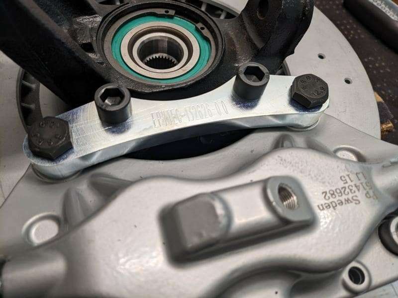 Ici vous pouvez voir une autre photo de l'adaptateur de réglage des freins en relation avec l'étrier de frein de la Volvo S60R et le disque de frein 330x26 mm de l'Alfa Romeo 159