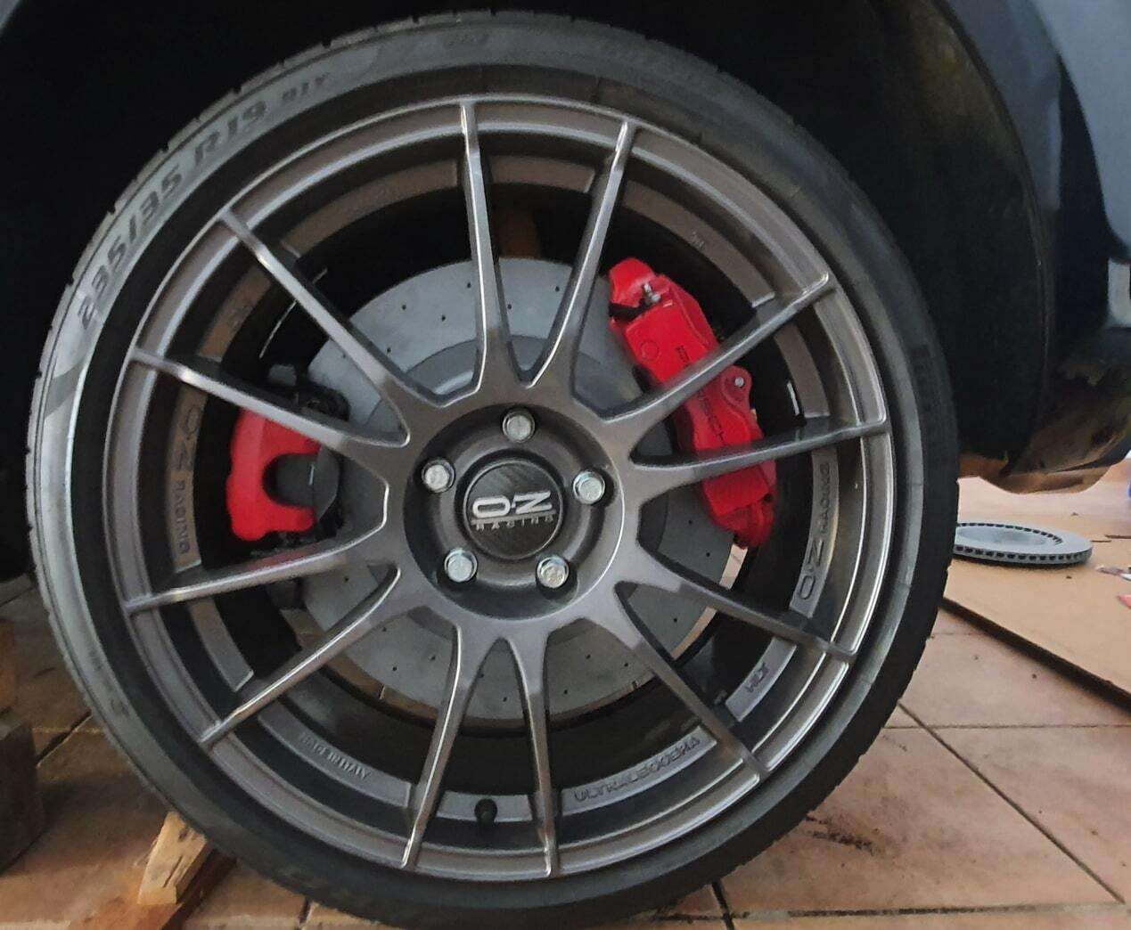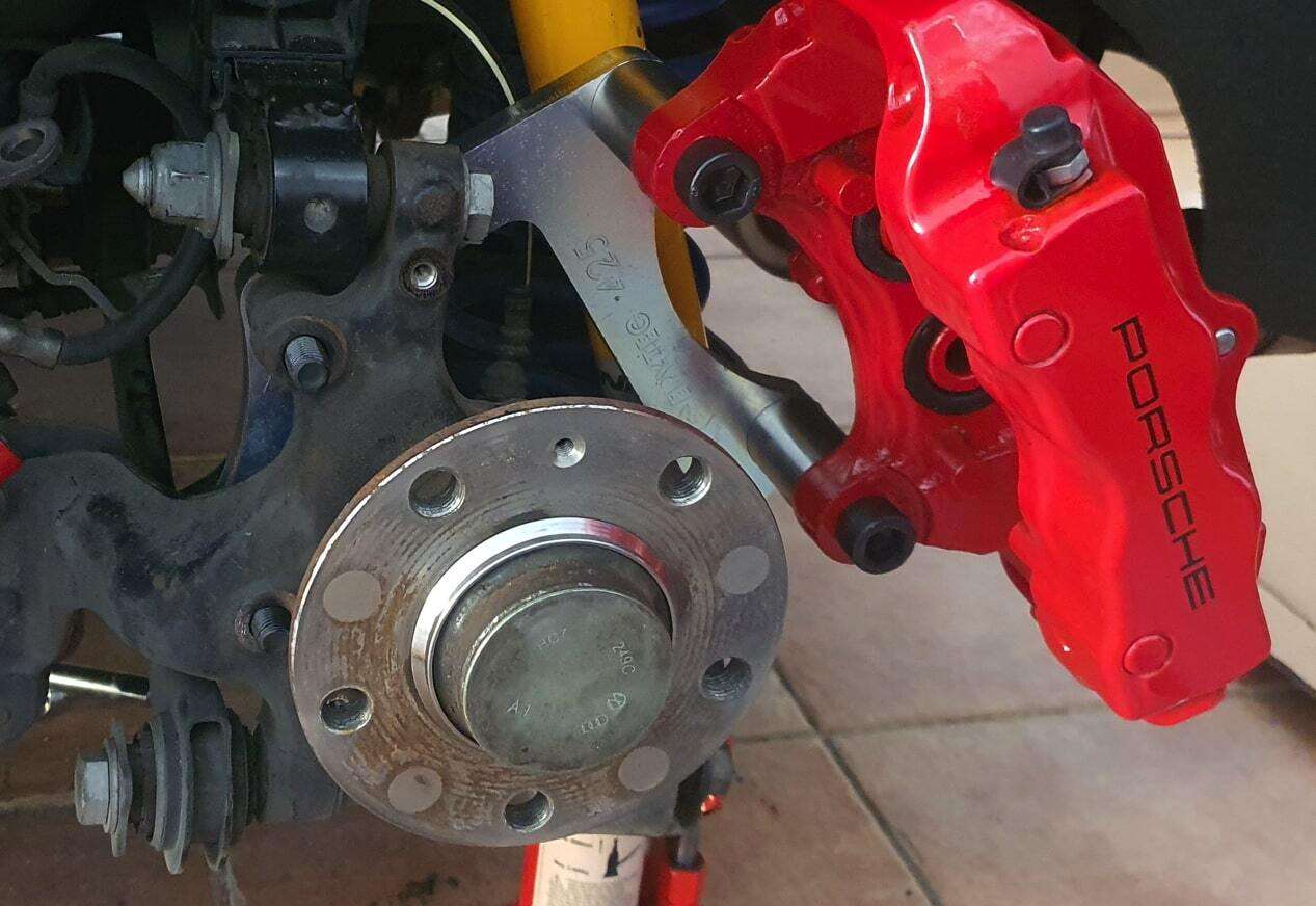 Ainsi, la transformation avec les étriers de frein à main Porsche Cayenne et R32 et les disques de frein RS7 356x22mm est presque terminée.
