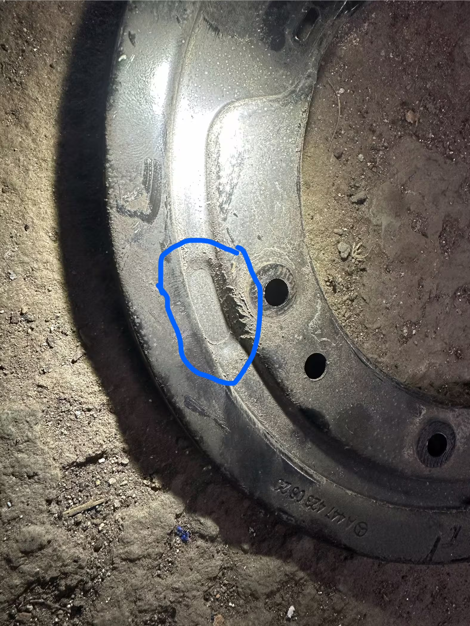 Afin de garantir un montage à plat et sans tension, ces zones - entourées en bleu sur la photo - ont dû être aplaties de manière professionnelle à l'aide d'un maillet. Pour cela, il est recommandé de poser d'abord la tôle d'ancrage à titre d'essai et de marquer les surfaces de contact avec un feutre. Ensuite, la déformation peut être effectuée avec précaution sur un étau ou une plaque métallique plane. Attention : ne travailler qu'avec un coup de marteau contrôlé afin de ne pas trop déformer ou casser la tôle