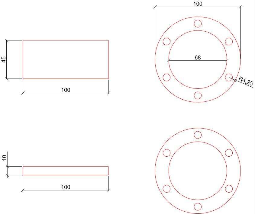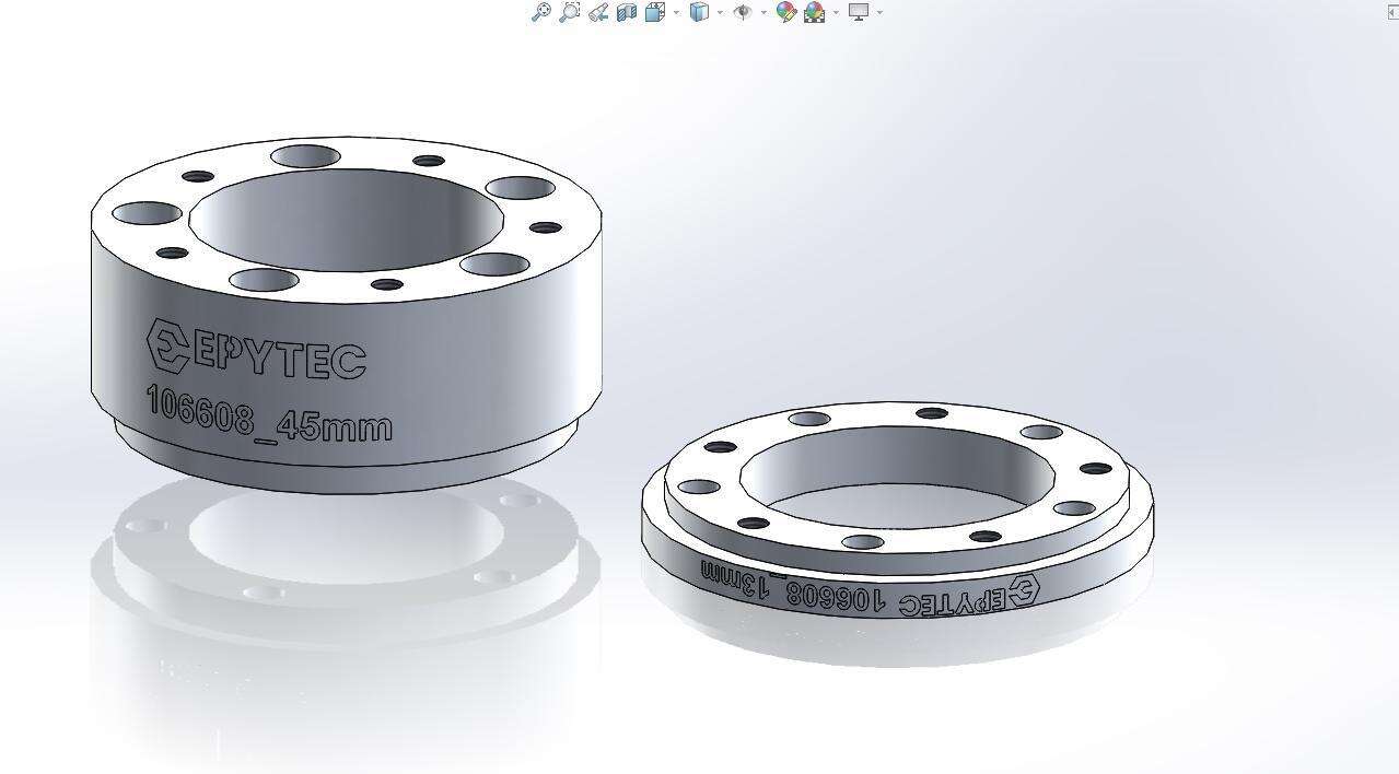 Jonas nous a envoyé deux croquis pour les brides d'arbre de transmission / rondelles d'écartement. Nous avons repris les dimensions dans le programme CAD et fabriqué un modèle en 3D.
