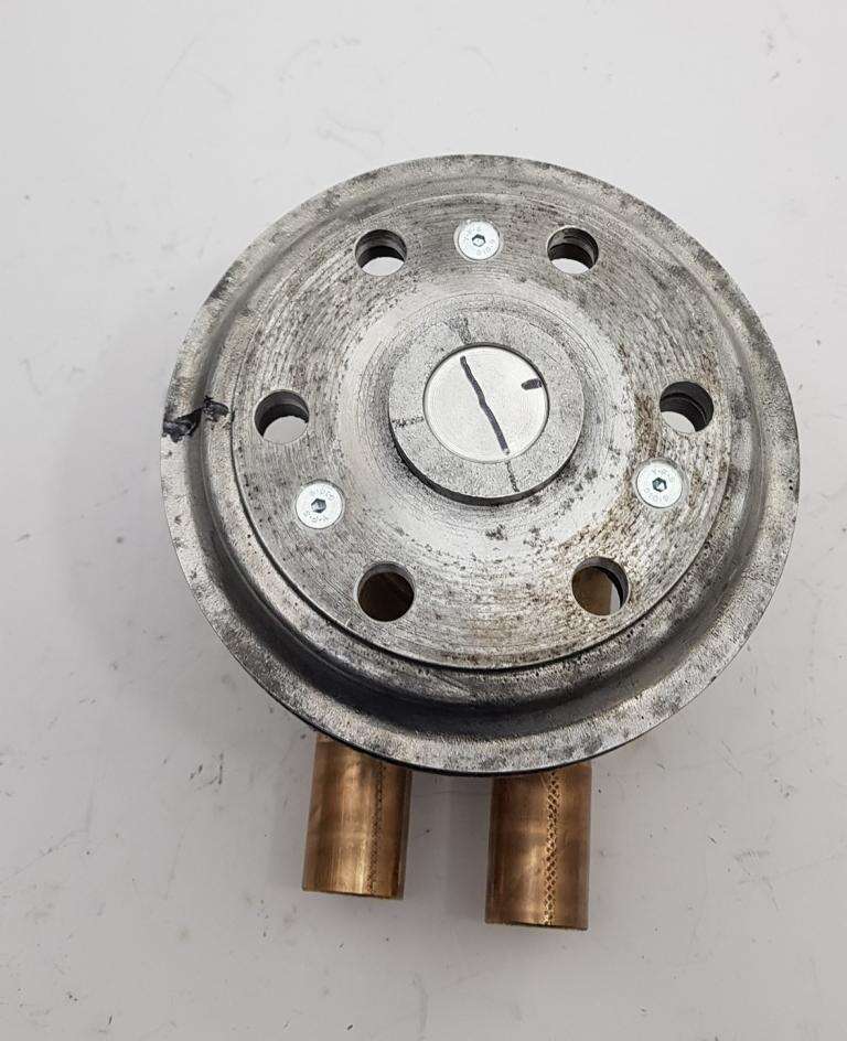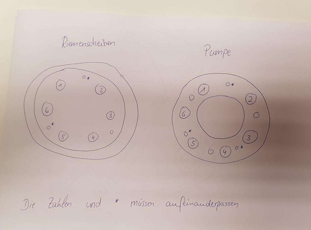 Notre client Rainer a besoin d'une poulie rééquilibrée avec un nouveau cercle de trous pour son bateau Taroni Mistral année 1964, équipé d'un moteur Chevi 5,7 litres V8, car la poulie n'est plus compatible avec la nouvelle pompe à eau de mer.