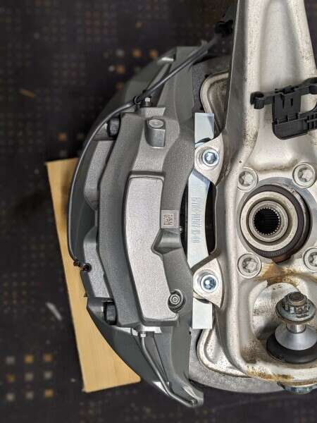 Le défi de cette transformation consistait à adapter avec précision l'adaptateur d'étrier de frein au logement d'essieu du GLE 63S, afin de garantir un alignement parfait des étriers avec les disques de frein de grandes dimensions.