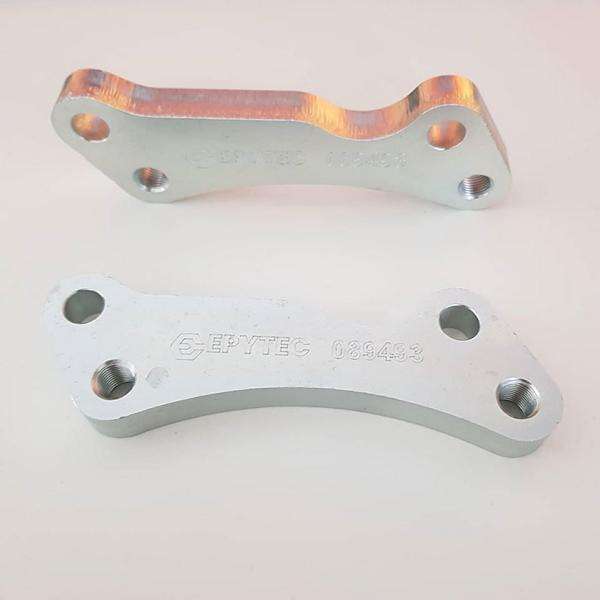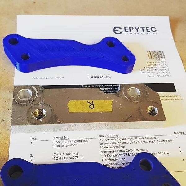 L'adaptateur de frein tuning nous est revenu de l'entreprise de traitement de surface et a été envoyé directement à Benni. Il a monté l'adaptateur de freinage et conduit maintenant un nouveau système de freinage.