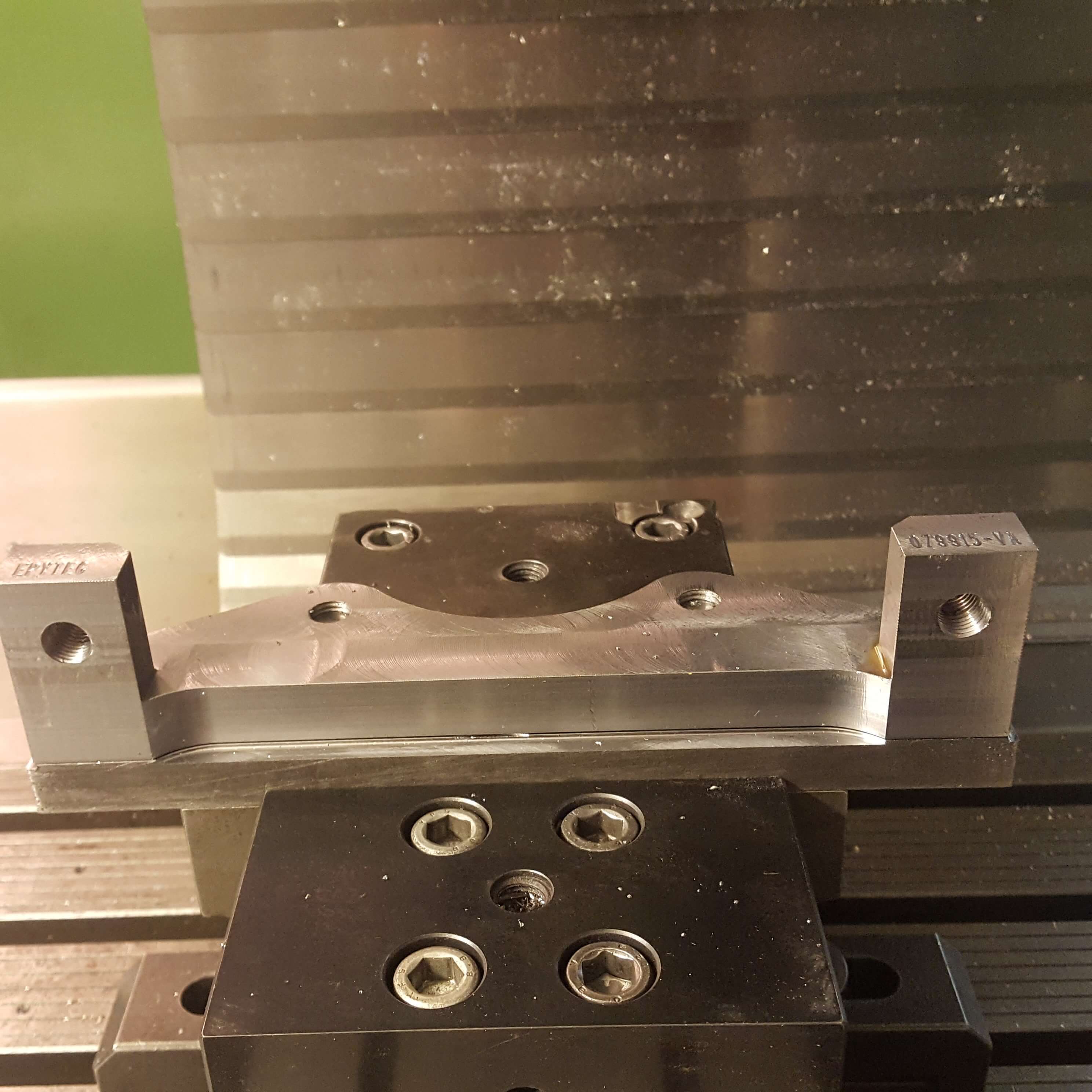 Après l'accord de Sven, nous fraisons l'adaptateur de frein tuning pour la VW Fox de 1979 pour qu'il soit parfaitement adapté. Il est ensuite envoyé chez l'affineur de surface.