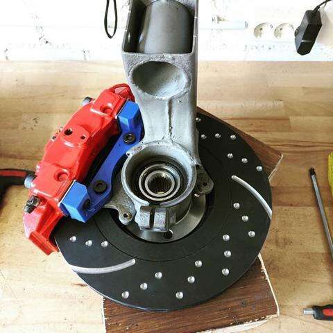 Transformation de la VW Fox (année 1979) sur le frein Porsche Boxter avec le disque de frein VW Golf 2 G60 280x22mm.