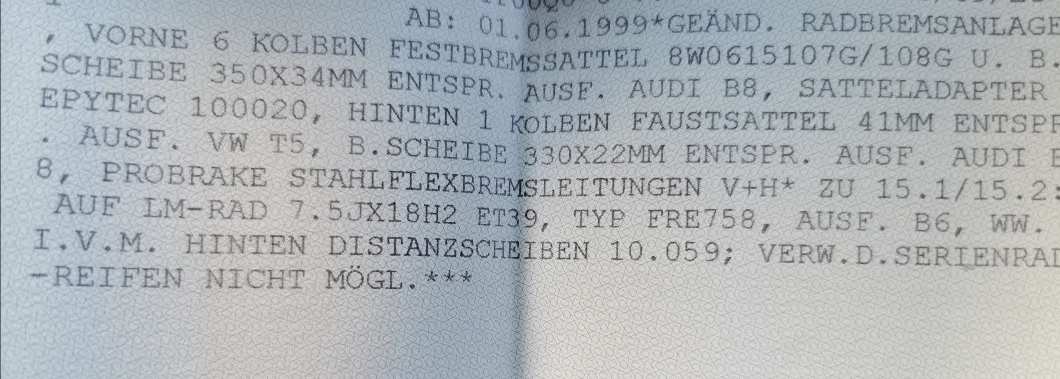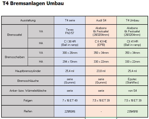Notre client Rolf souhaite monter sur son bus VW T4 le système de freinage suivant avec ces composants sur son essieu avant et arrière :