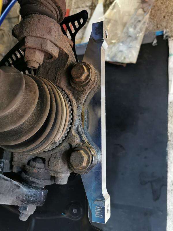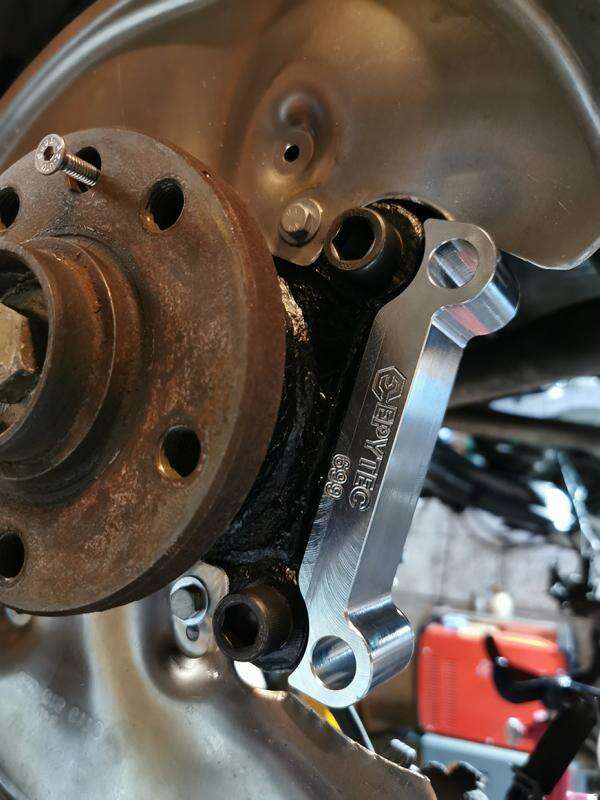 Montage de l'adaptateur Epytec Tuning sur l'essieu avant de la VW T4