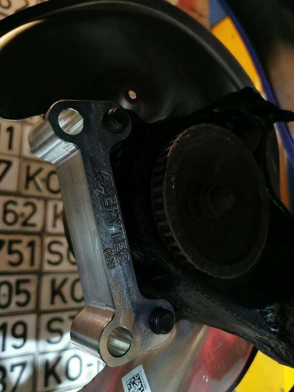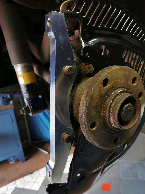 Montage de l'adaptateur Epytec Tuning ( article 699) sur l'essieu arrière de la VW T4.