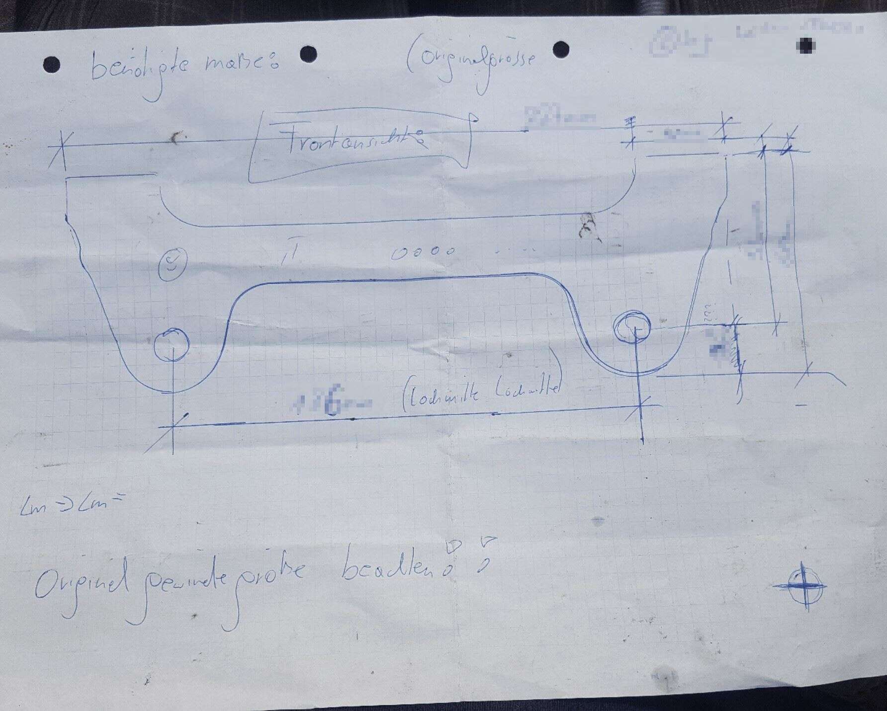 - Notre client Sandro nous a envoyé le croquis suivant pour monter le système de freinage de l'Audi TTRS / RS 3 sur la VW Golf 5 GTI.
