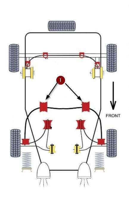 - 1x kit des douilles polyuréthane pour le roulement/palier stabilisateur (intérieur), essieu avant, sur les modèles Golf 1 Scirrocco 1 und 2 Jetta 1