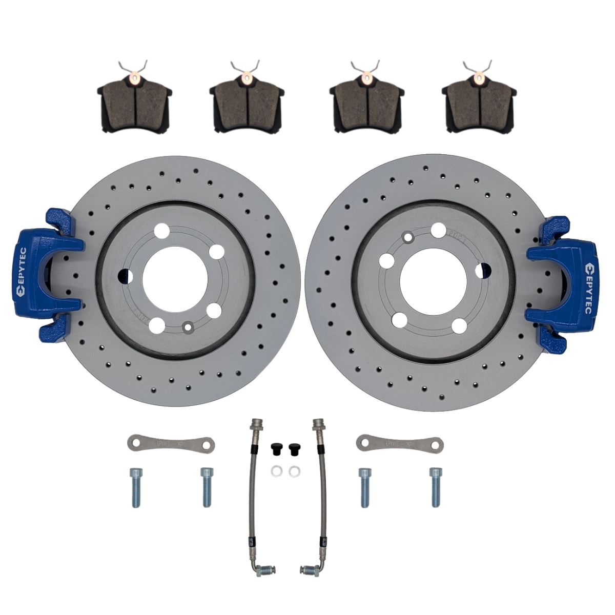 Grand kit de freinage essieu arrière VW Golf 4 VW Polo 6r WRC adaptateur R32 S3 frein 256x22 disque de frein - couleur de l'étrier de frein : bleu avec logo Epytec