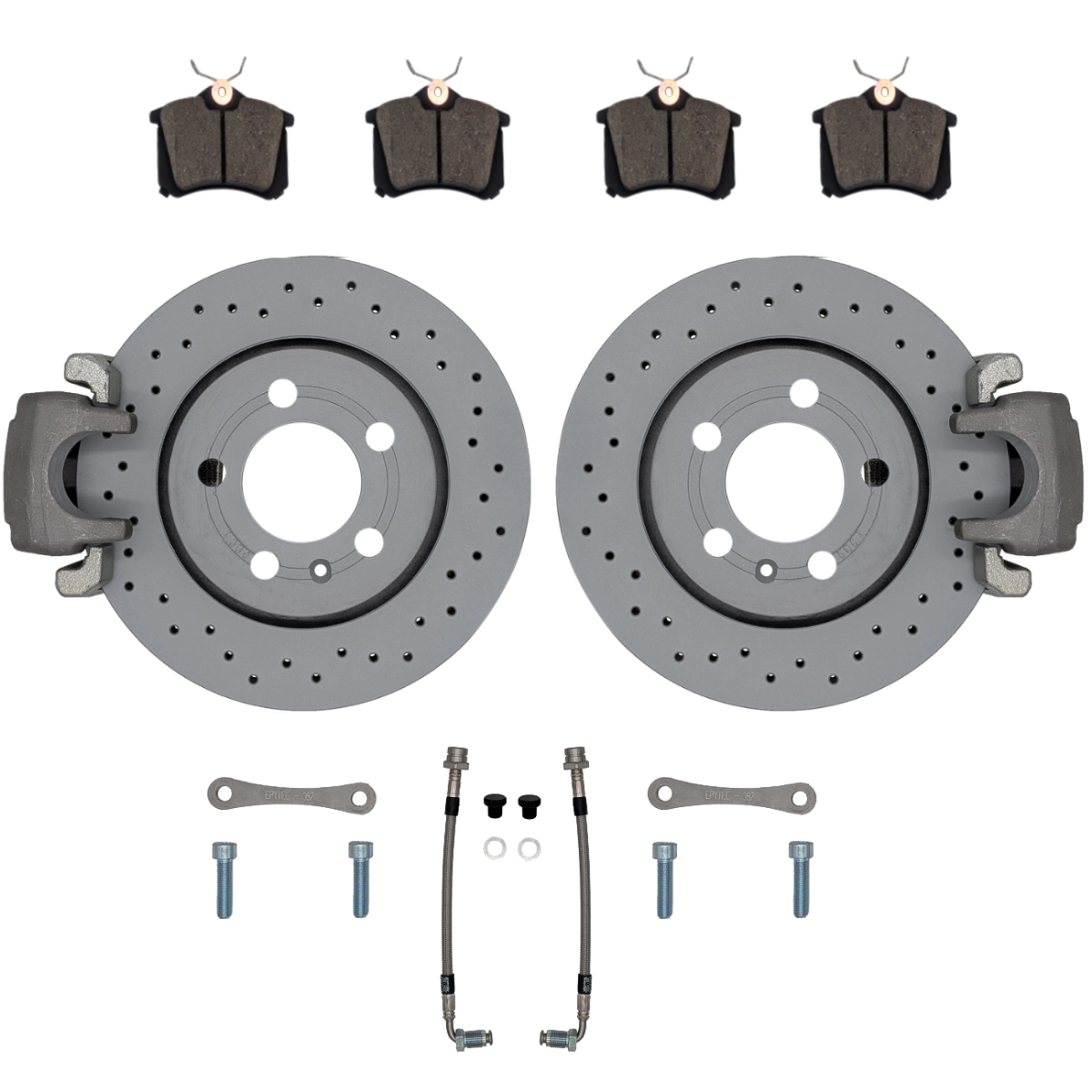 Avec notre kit de freinage haute performance pour tous les véhicules à traction avant des séries VW Golf 4, Audi TT et A3, tu peux convertir ton essieu arrière en étrier de frein à main Golf 4 R32 / Audi S3 et obtenir ainsi des performances idéales.