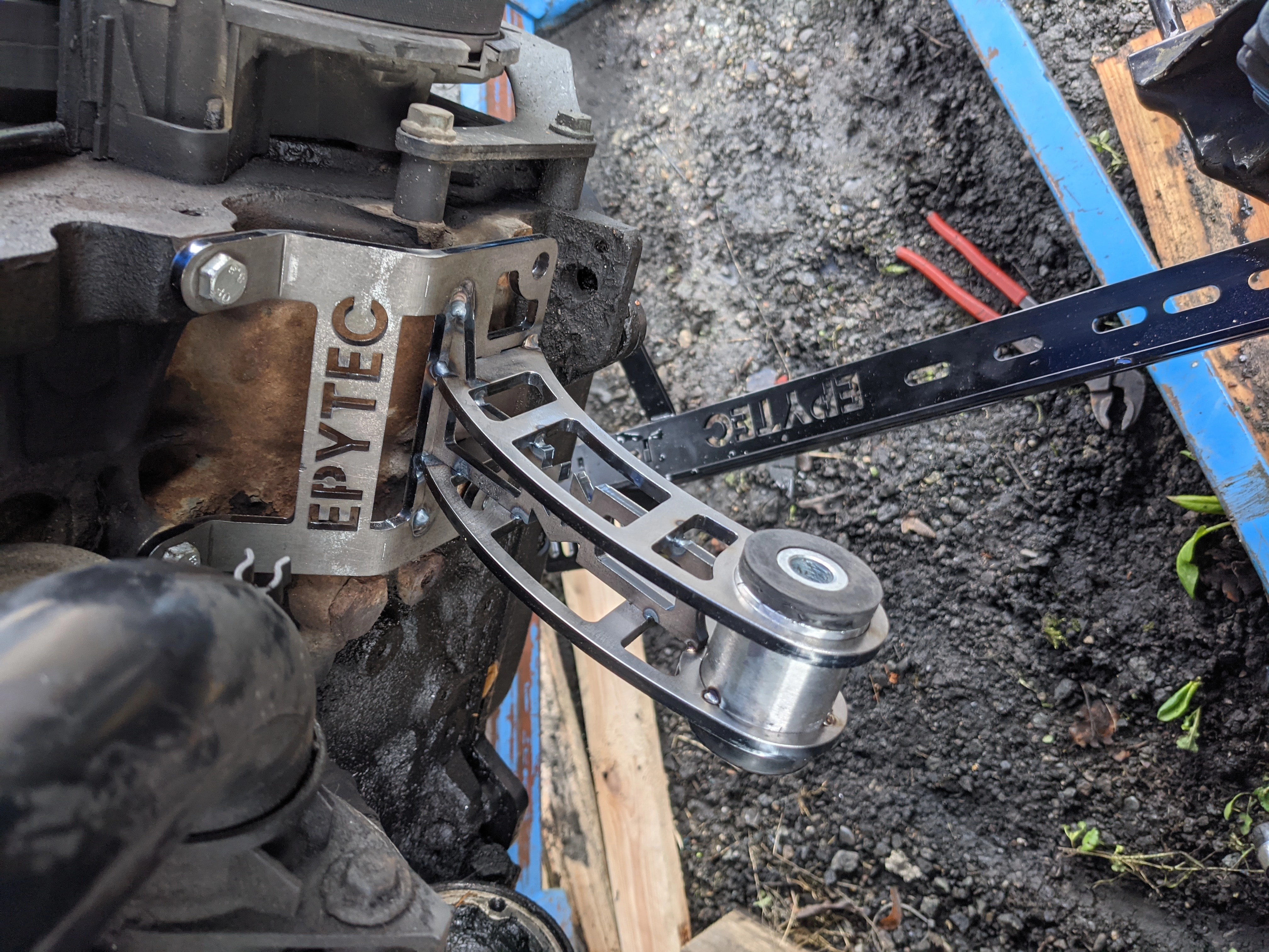 Le support moteur remplace le support en fonte d'aluminium d'origine et le support en caoutchouc sur l'axe.