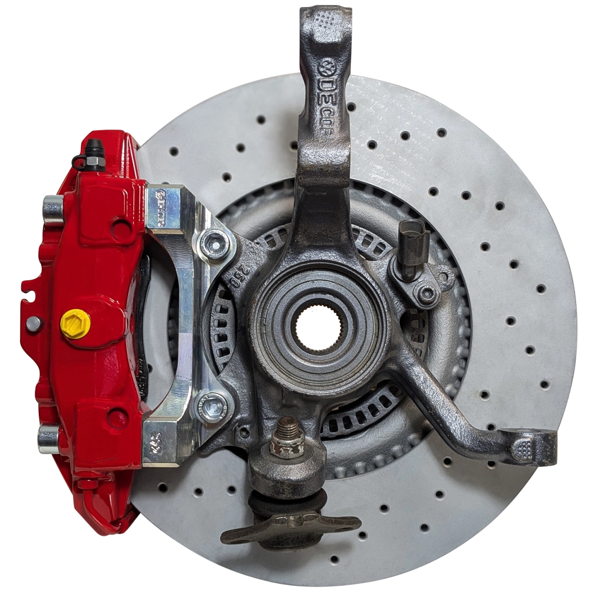 Avec notre kit de freinage haute performance pour VW Golf 3 Passat 35i Corrado VR6 Série et bien d'autres voitures tu peux équiper ton essieu avant d'un système de freinage à 4 pistons et obtenir une performance idéale.