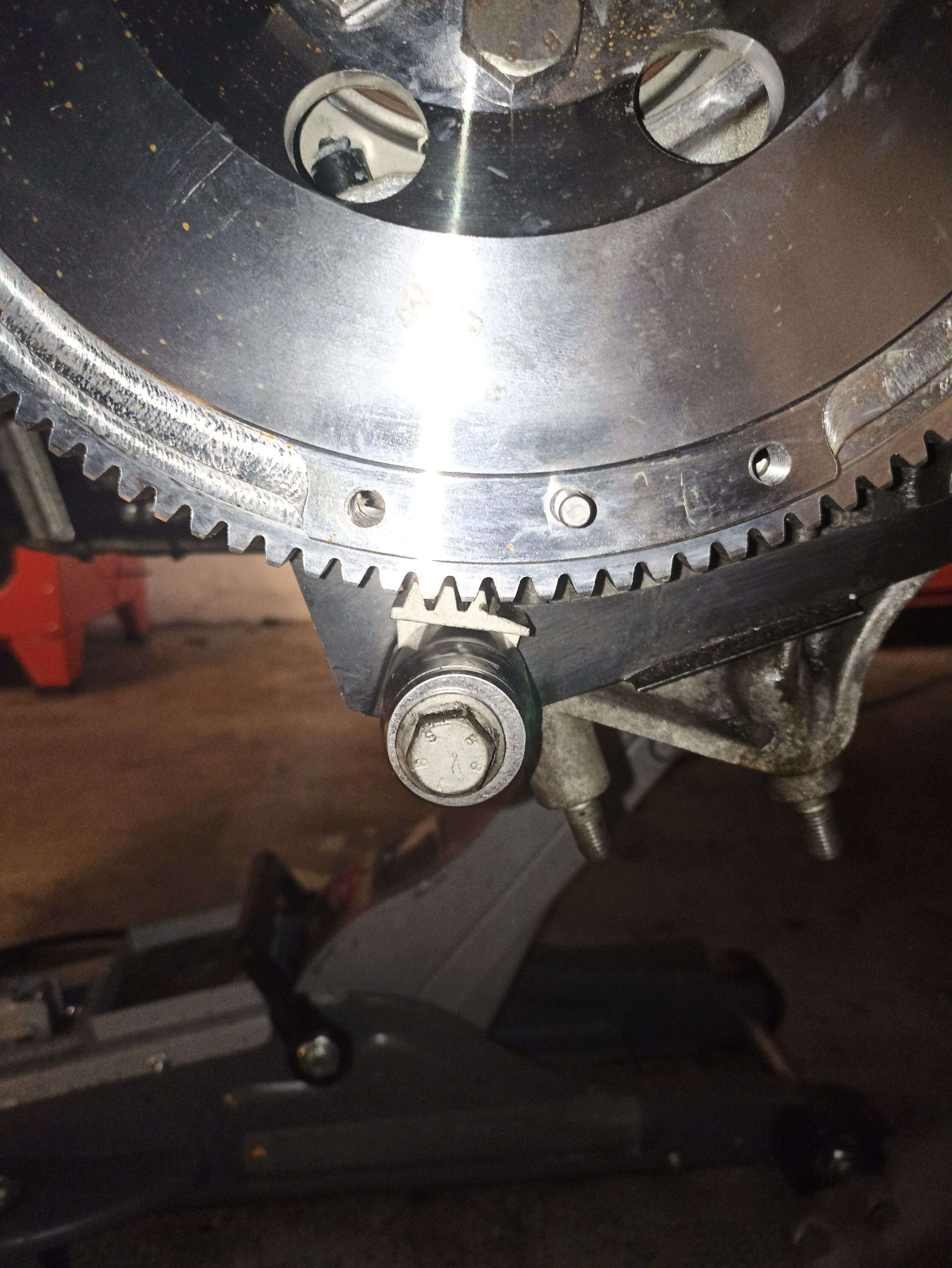 Le volant d'inertie ne possède pas de marquage du PMH, seulement la broche au dos, tout comme le volant d'inertie d'origine. Conseil : pour reprendre le marquage du PMH, il faut tourner le volant d'origine jusqu'au point PMH avant de le démonter et marquer le nouveau volant exactement dans cette position.
