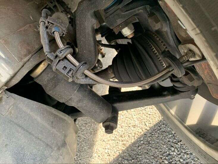Utilise dans ce cas-là un spacer / élargisseur de voie >> directement vers les spacers << - Installe l'adaptateur avec les composants nécessaires et vérifie ensuite si de nouvelles conduites de frein sont nécessaires. Car selon les véhicules, il se peut que les conduites soient trop courtes ou bien que l'embout de la conduite ne corresponde pas. Nous te conseillons d'ailleurs de passer à des conduites en acier flex de par la qualité et technicité avantageuse. Spécifiquement pour cela, nous avons développé un configurateur en ligne d'acier flex, où tu peux assembler le type de conduites en acier flex, que tu souhaites.