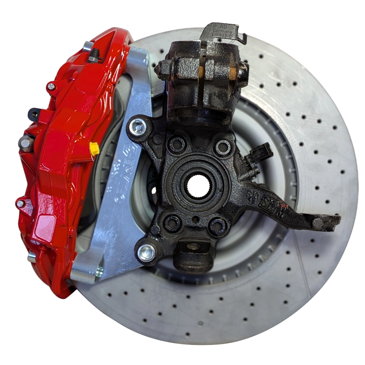Avec notre kit de freinage haute performance pour la Golf 5, 5 Série et bien d'autres voitures avec fusée en acier. Tu peux équiper ton essieu avant d'un système de freinage à 6 pistons et obtenir une performance idéale.