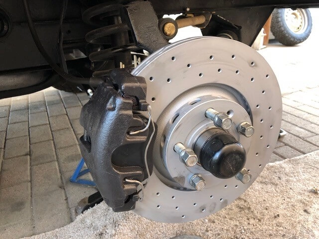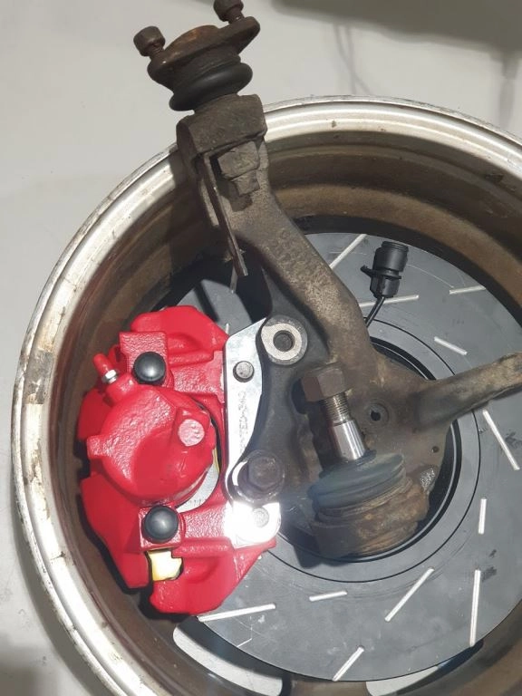- Important: Convient uniquement aux logements de roulements de roue à partir de l'année de construction 1986. Ceci est facile à vérifier, si l'étrier de frein d'origine a été fixé avec des vis M16, cet adaptateur convient.