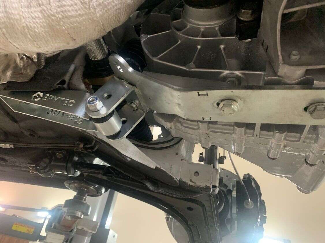Durch die achsiale Gummilagerung und die höhenverstellbare U-Buchse erreichen wir eine perfekte Performance. Der Motor kippt weniger und die Karosse wird trotzdem ideal geschohnt.