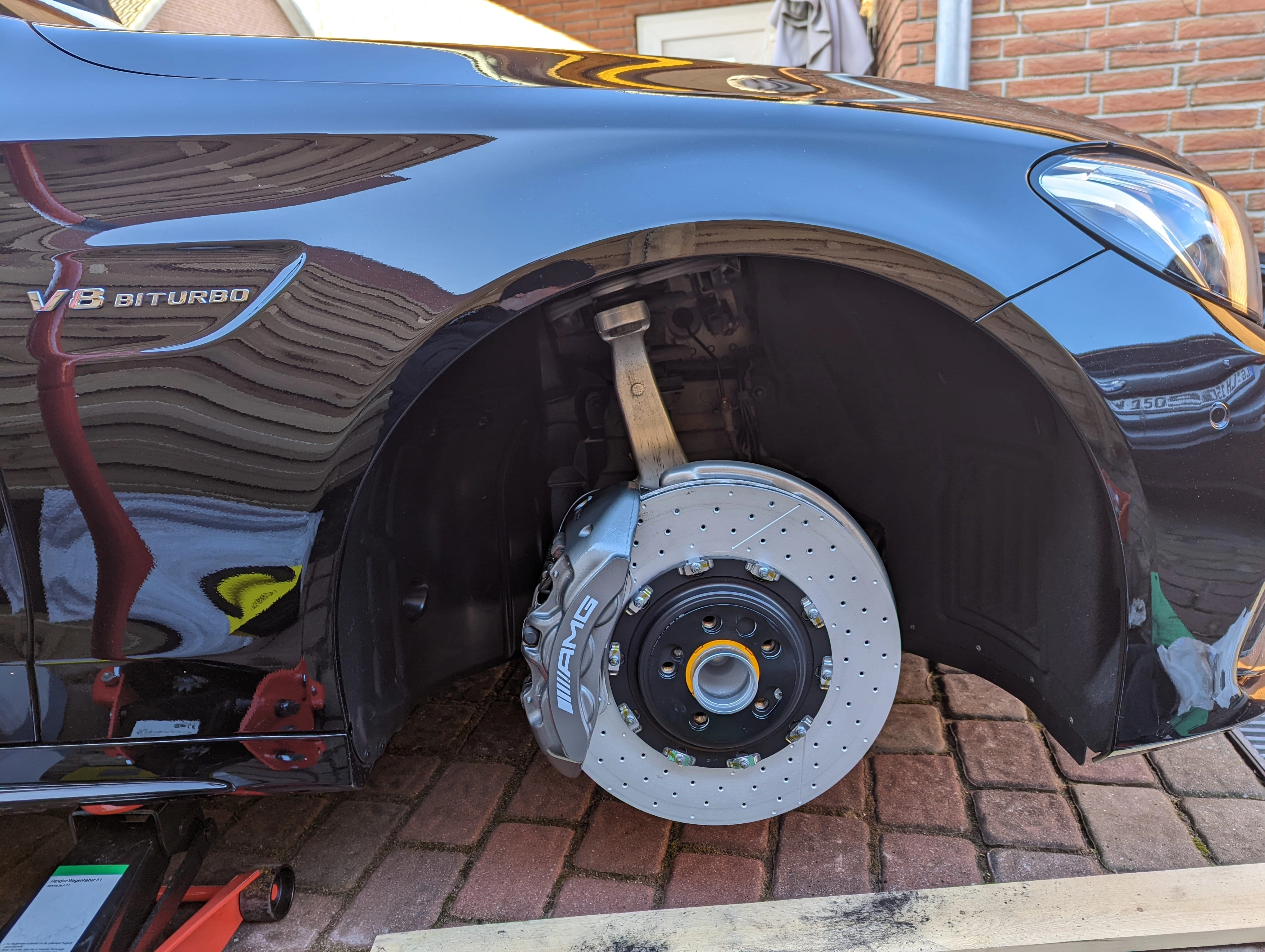 Der Adapter passt mit beiden originalen Bremssätteln, welche beim Fahrzeug verbaut worden sind. Bis zum Baujahr 08/2017 wurde der Akebonobremssattel verbaut, ab dem Baujahr 09/2017 wurde dann standardmäßig der Brembobremssattel des C 63 AMG (205) verbaut.
