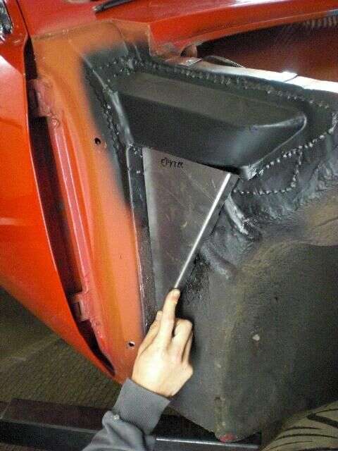 Versteifungsblech für den hinteren Kotfluegel an der Opel Kadett C Karosserie.