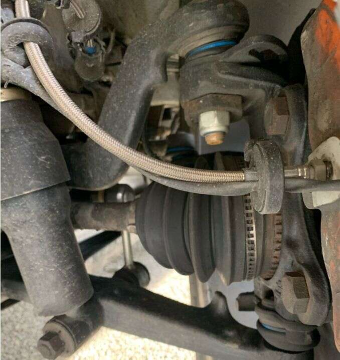 Längere Stahlflex Bremsleitung mit Teilegutachten für den Umbau auf größere Bremsanlagen z.B. Brembo 4-6 Kolben Bremssättel verbaut im Porsche oder TTRS.