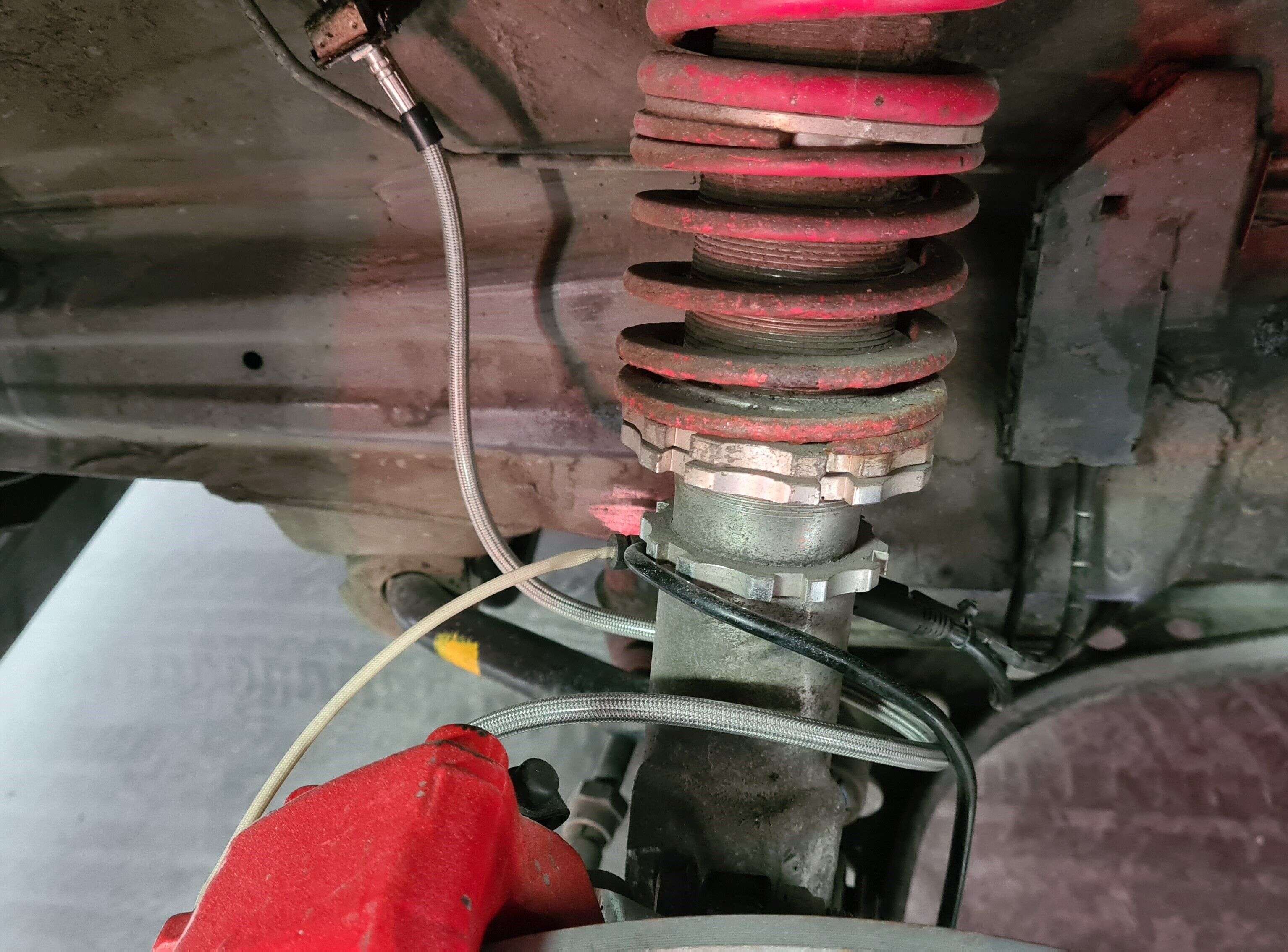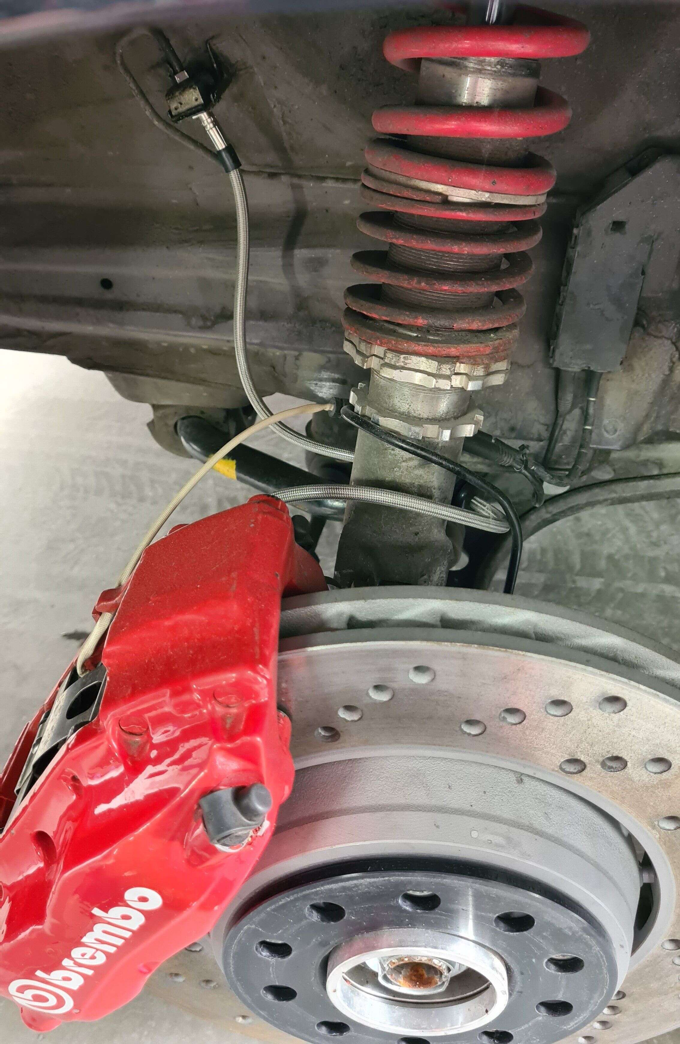 Längere Stahlflex Bremsleitung mit Teilegutachten für den Umbau auf größere Bremsanlagen z.B. Brembo 4-6 Kolben Bremssättel verbaut im Porsche oder TTRS.